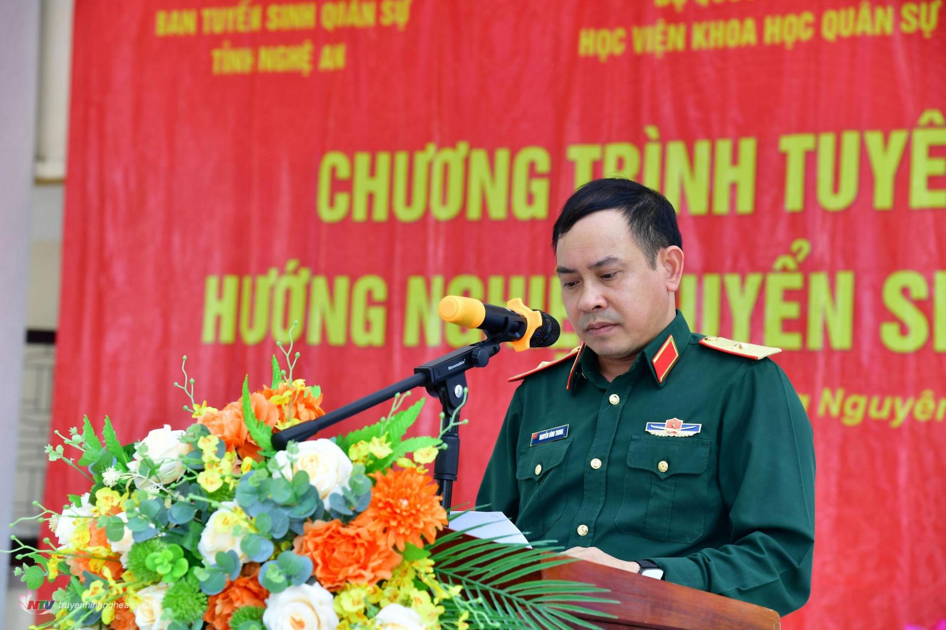 Tham dự chương trình còn có Thiếu tướng Nguyễn Đình Trung – Chính ủy Học viện KHQS và Đại tá Đinh Bạt Văn – Phó Chỉ huy trưởng, Tham mưu trưởng Bộ CHQS tỉnh Nghệ An.