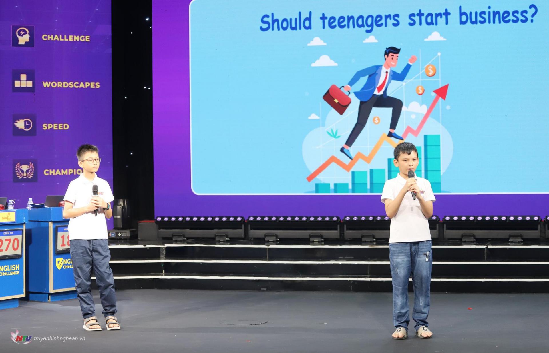 Ở phần thi này, Hoàng Bách cùng Thái Sơn bắt cặp với nhau cùng tranh luận về chủ đề "Should teenagers start busines?" (Học sinh có nên khởi nghiệp kinh doanh không?), Diễm My và Tường Vy cùng tranh luận về chủ đề "Is testing the best way to evaluate one's ability?" (Kiểm tra có phải là cách tốt nhất để đánh giá năng lực của một người không?). Tường Vy được Ban giám khảo đánh giá có phần thể hiện tốt nhất qua đó giành số điểm tuyệt đối 300 điểm. Thế nhưng số điểm này không đủ giúp nữ sinh đến từ Đô Lương cải thiện vị trí khi vẫn xếp thứ cùng với Hoàng Bách với tổng điểm 470. Đứng ở vị trí thứ 2 là cậu nam sinh lớp 4 đến từ Thanh Chương với 520 điểm. Diễm My bảo toàn vị trí dẫn đầu với 540 điểm.