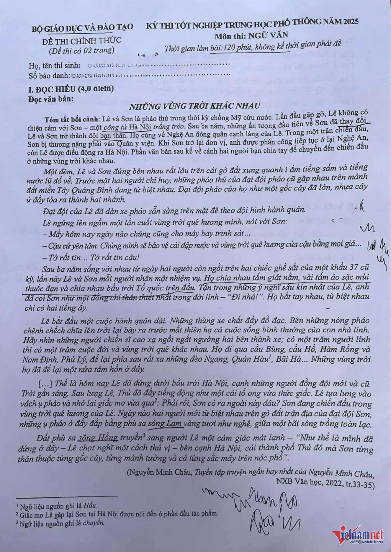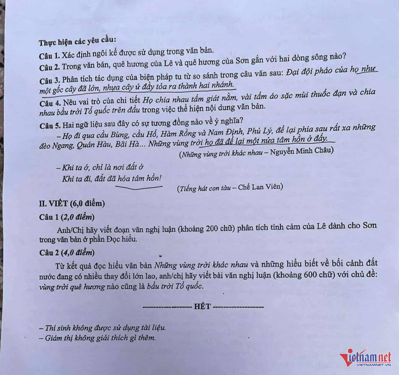 Đề thi Ngữ văn theo chương trình Giáo dục phổ thông 2018: