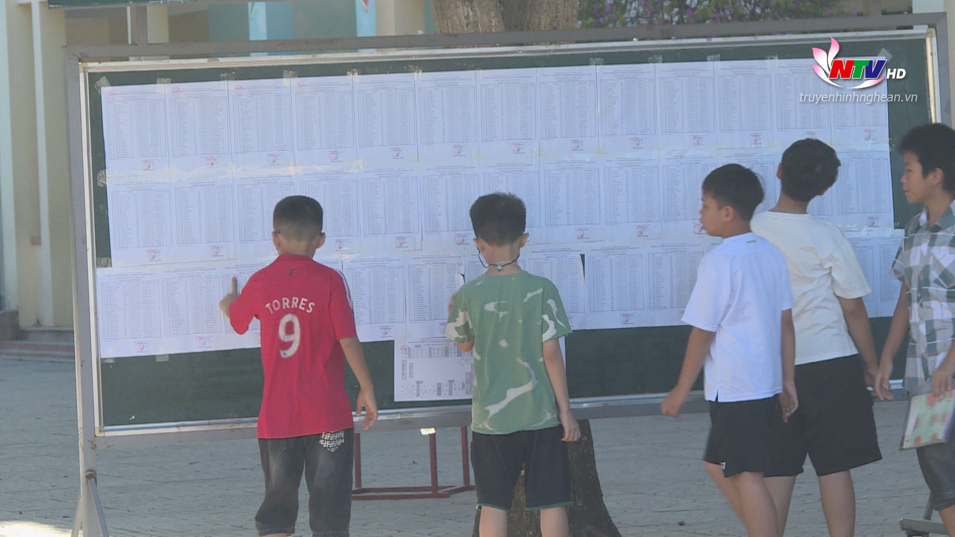 | Các thí sinh chuẩn bị vào phòng thi vào lớp 6 Trường THCS Đặng Thai Mai, sáng 2/6. |