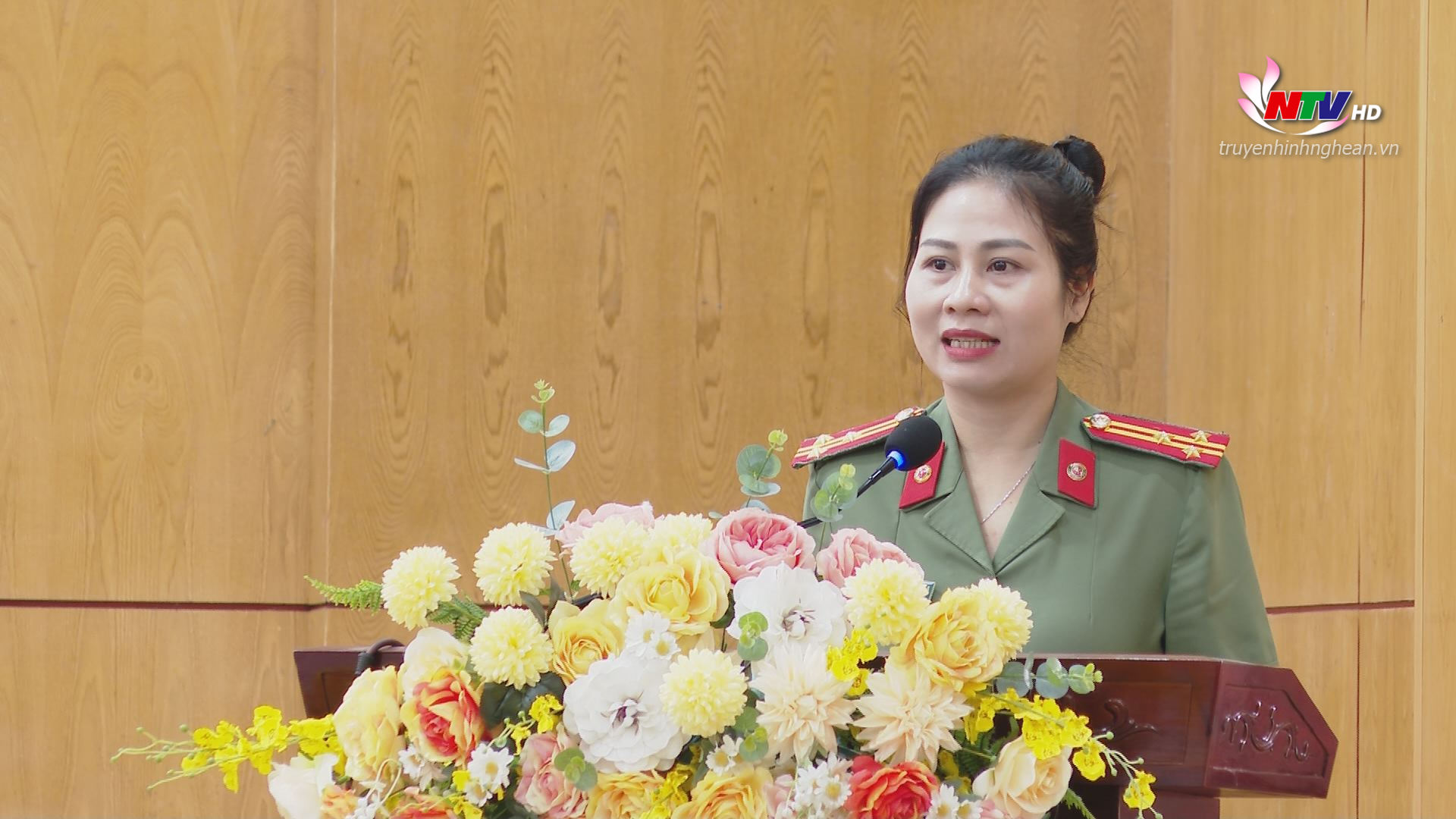 | Đại diện Công an tỉnh phát biểu tại hội nghị. |