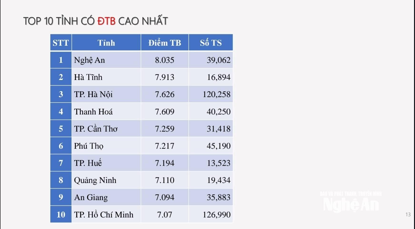 | Nghệ An là tỉnh có điểm trung bình môn Ngữ văn cao nhất cả nước. |