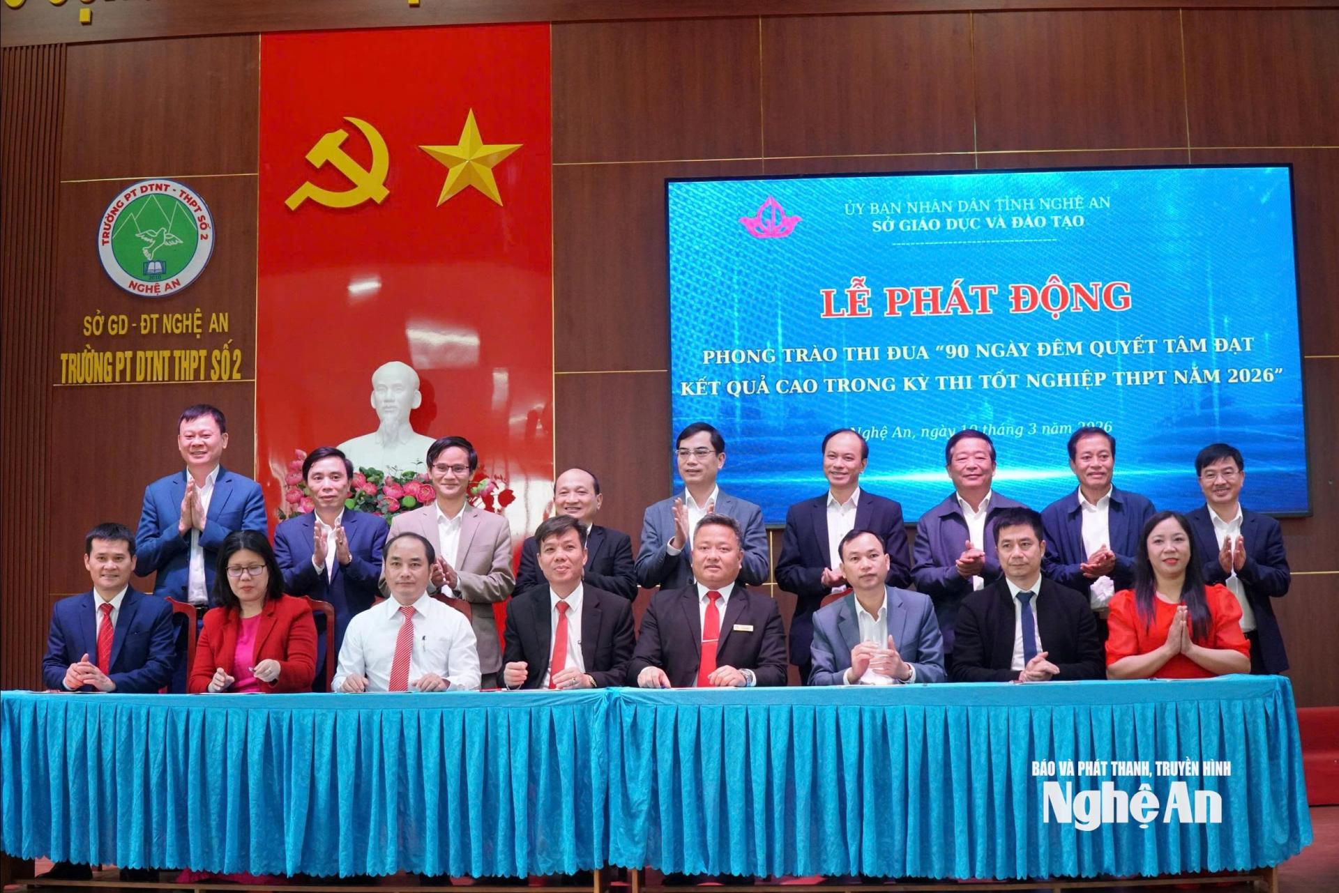 | Các trường học trên địa bàn tỉnh ký cam kết thực hiện phong trào thi đua "90 ngày đêm quyết tâm đạt kết quả cao trong kỳ thi tốt nghiệp năm 2026". Ảnh: Mỹ Hà |