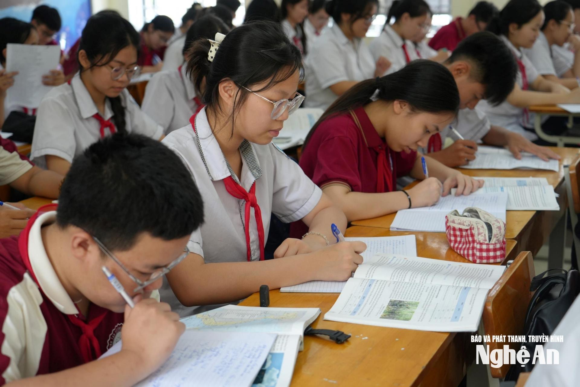 | Một buổi ôn tập của học sinh lớp 9, Trường THCS Nghi Phú. Ảnh: Mỹ Hà |
