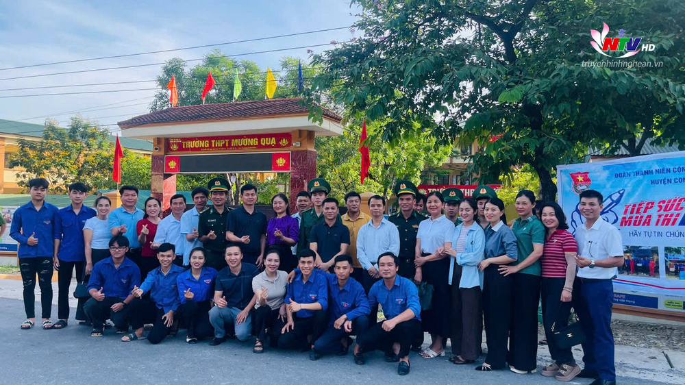 Cán bộ BP và các đoàn viên tiếp sức mùa thi tại Trường PTTH Mường Quạ, Con Cuông.