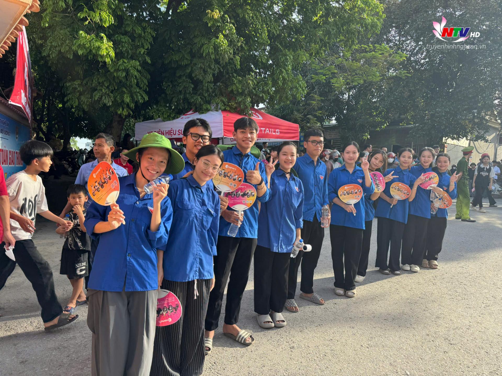Đội tình nguyện hỗ trợ thí sinh tại điểm thi trên địa bàn huyện Đô Lương. Ảnh: Ngọc Phương