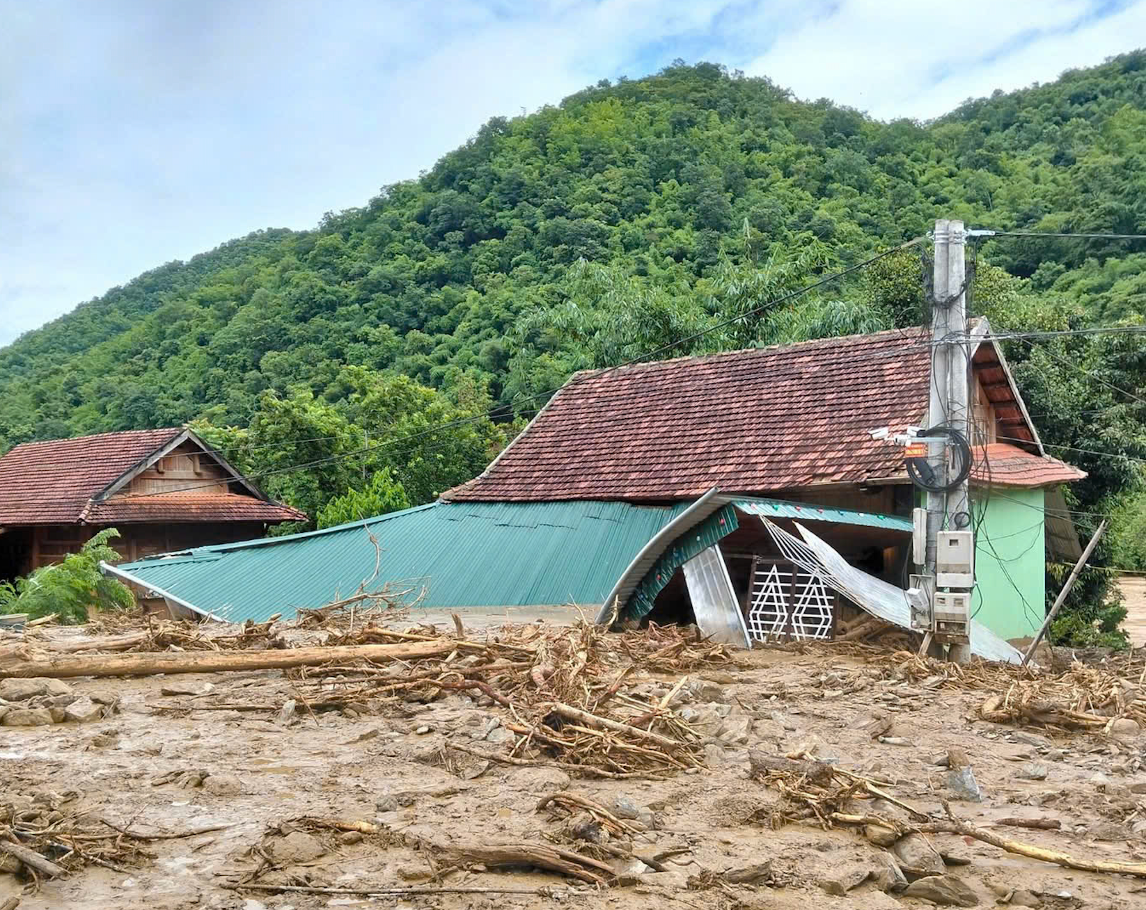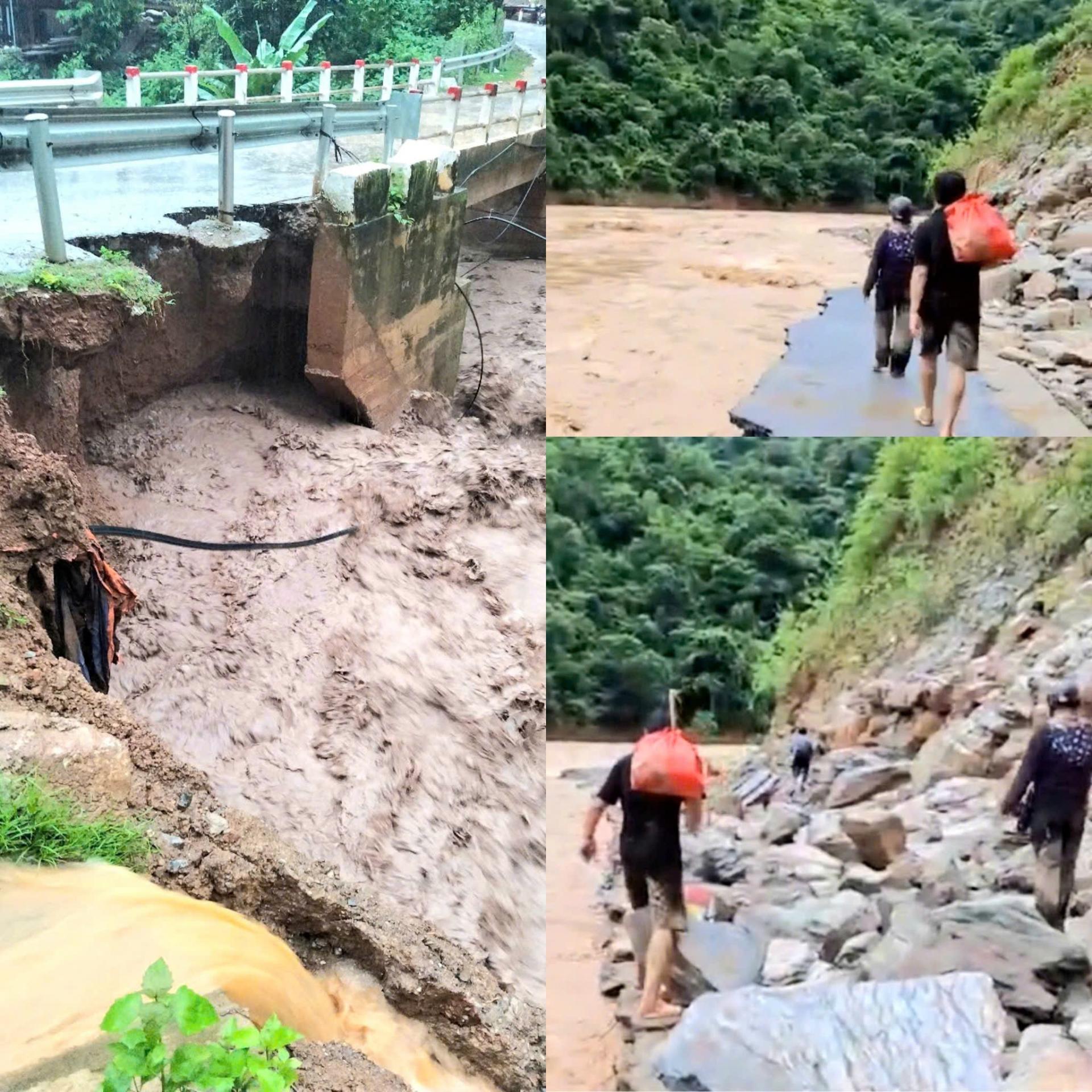 | Đối với các bản phía trong của xã Mường Ải cũ chưa tổng hợp được do không có thông tin và đường giao thông bị chia cắt hoàn toàn. Ngoài ra nhiều ngôi nhà có nguy cơ cao, lãnh đạo địa phương và các lực lượng đã vận động người dân ra khỏi khu vực nguy hiểm. Ảnh CSCC |
