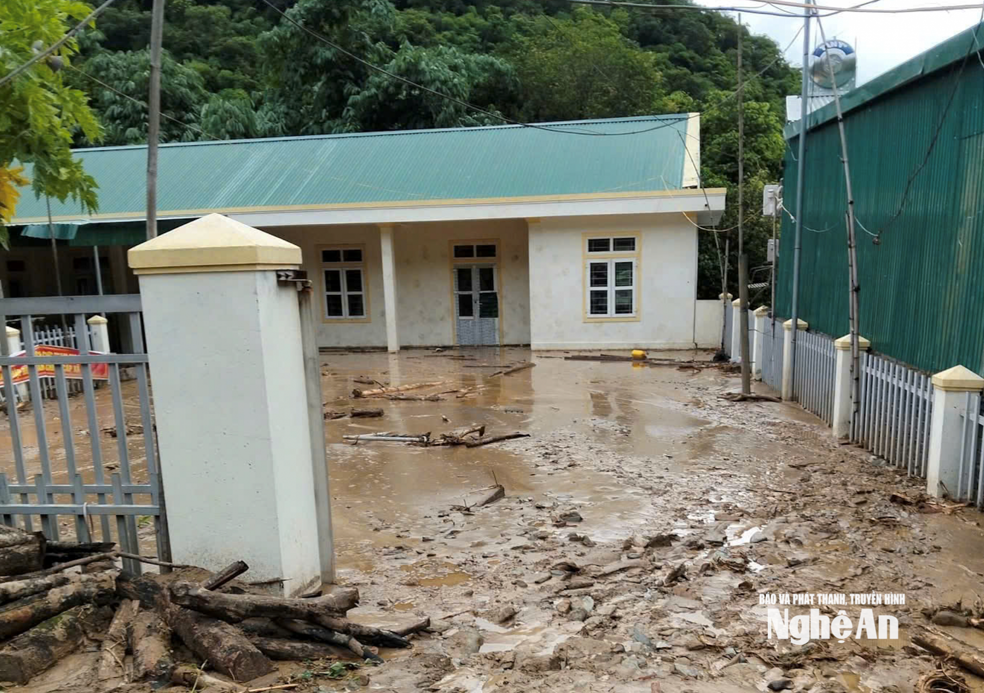 | Có 1 trường mầm non (ở bản Ta Đo) ngập đến mái nhà và 1 trường tiểu học tại đây cũng bị ngập nửa nhà. Ảnh: CSCC |