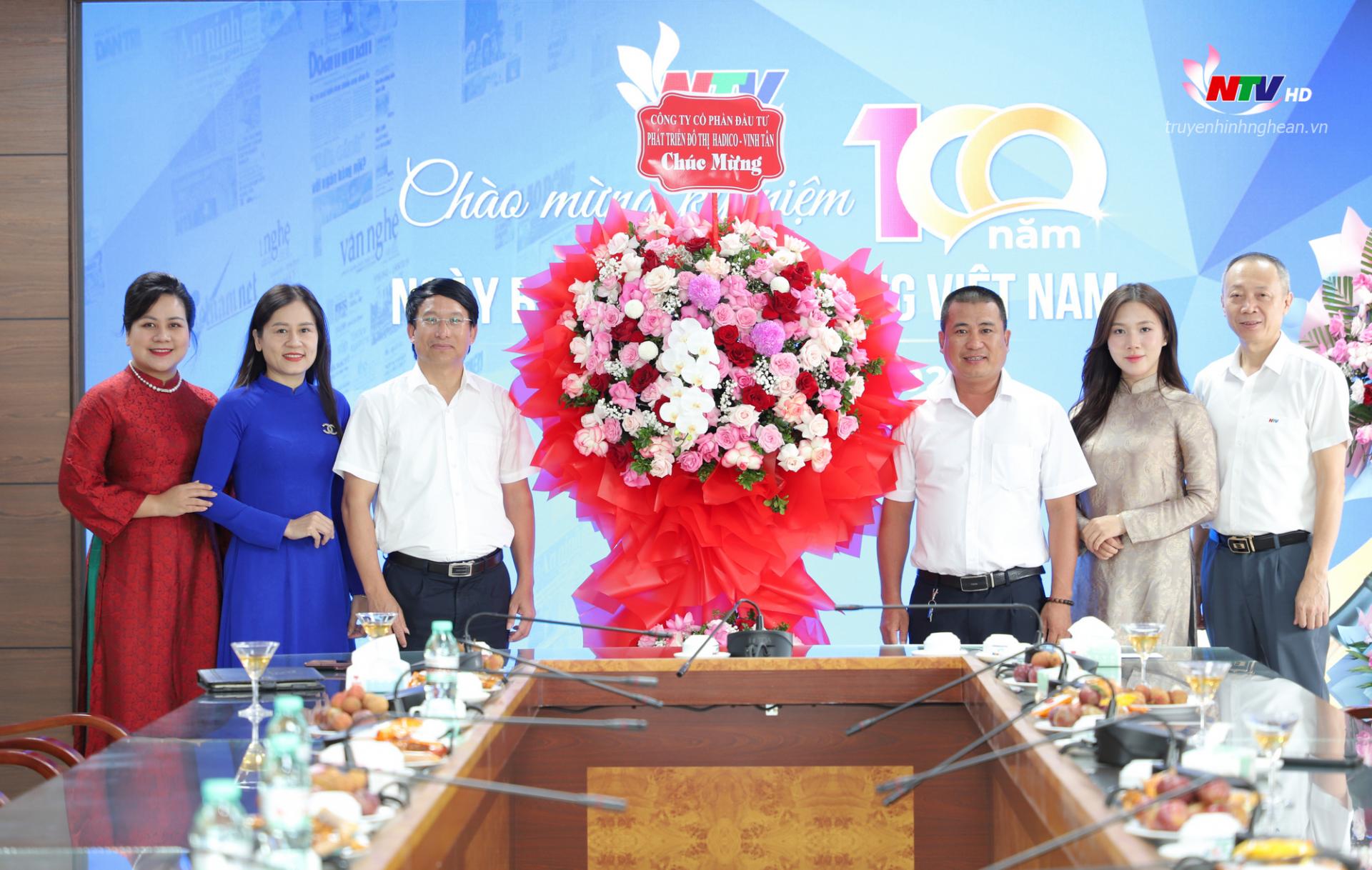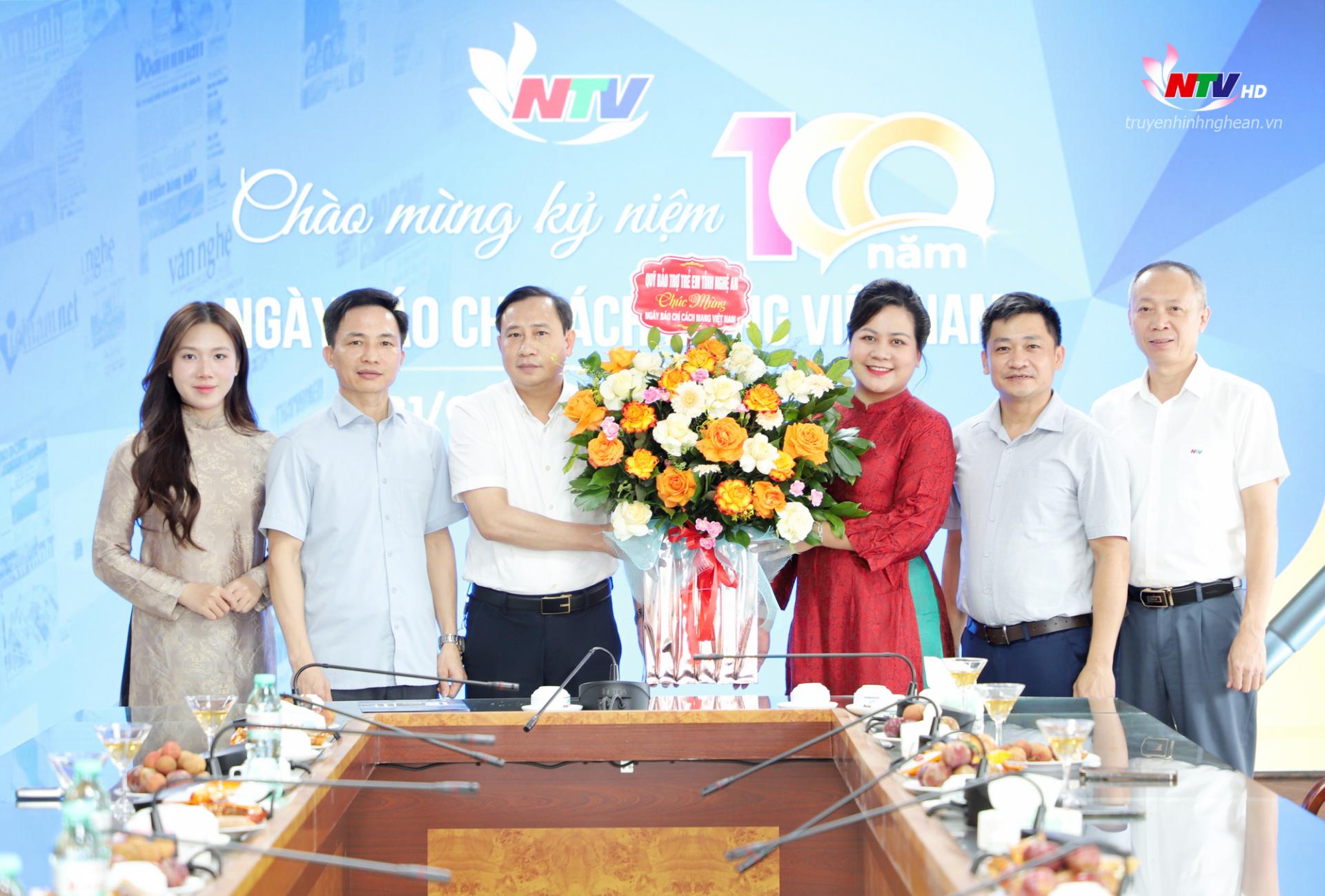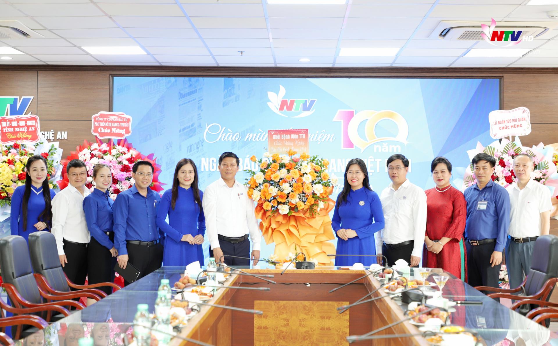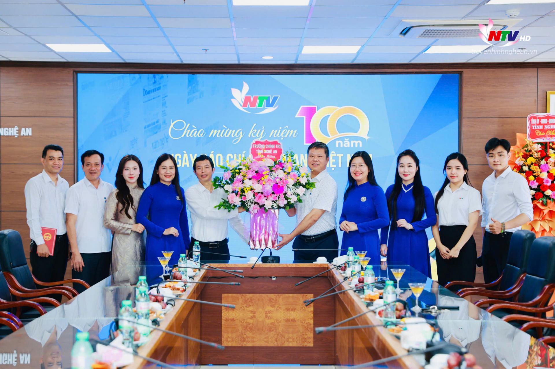 | Đoàn đại biểu Trường Chính trị tỉnh chúc mừng Đài PT-TH Nghệ An nhân kỷ niệm 100 năm ngày Báo chí cách mạng Việt Nam. |