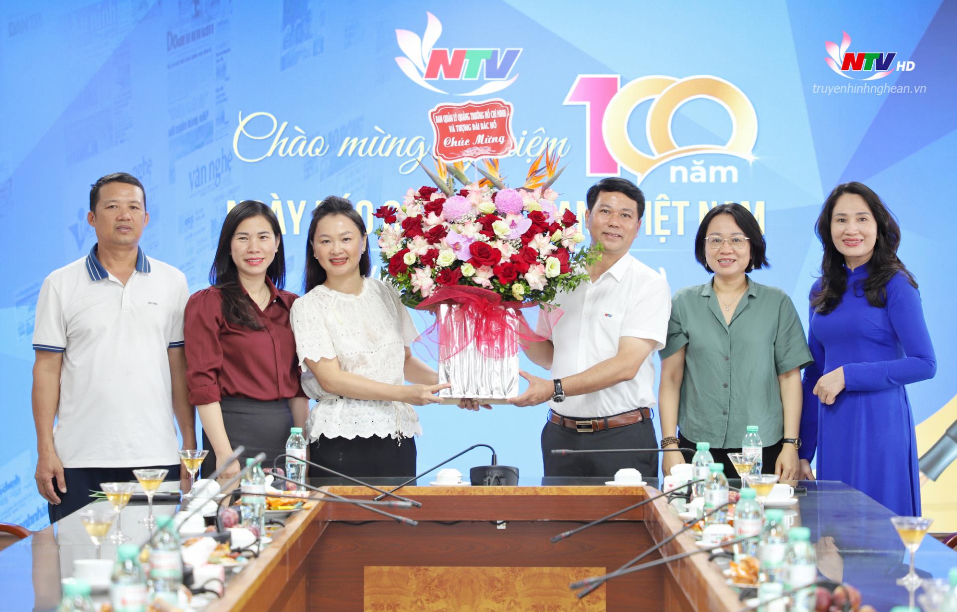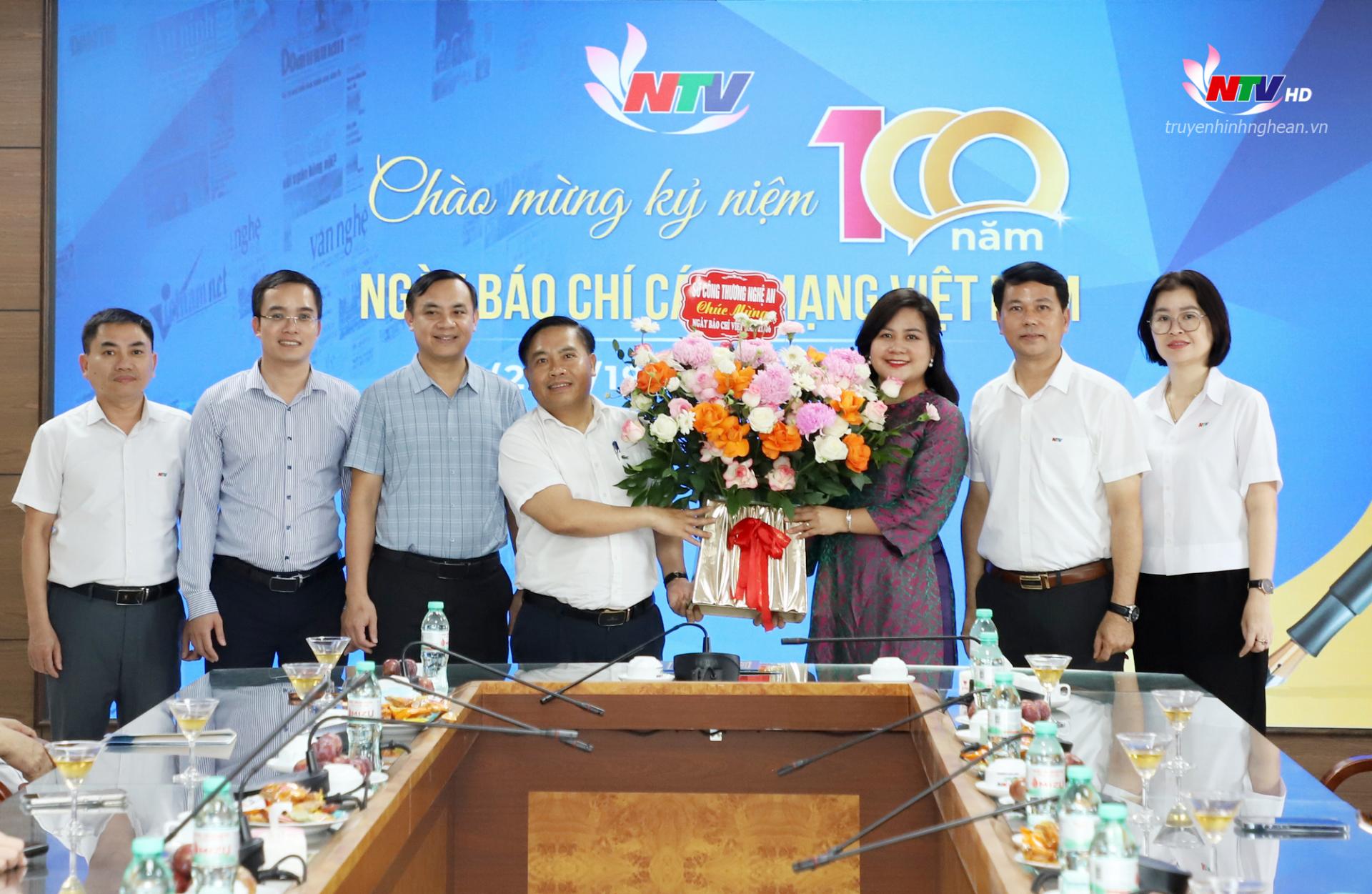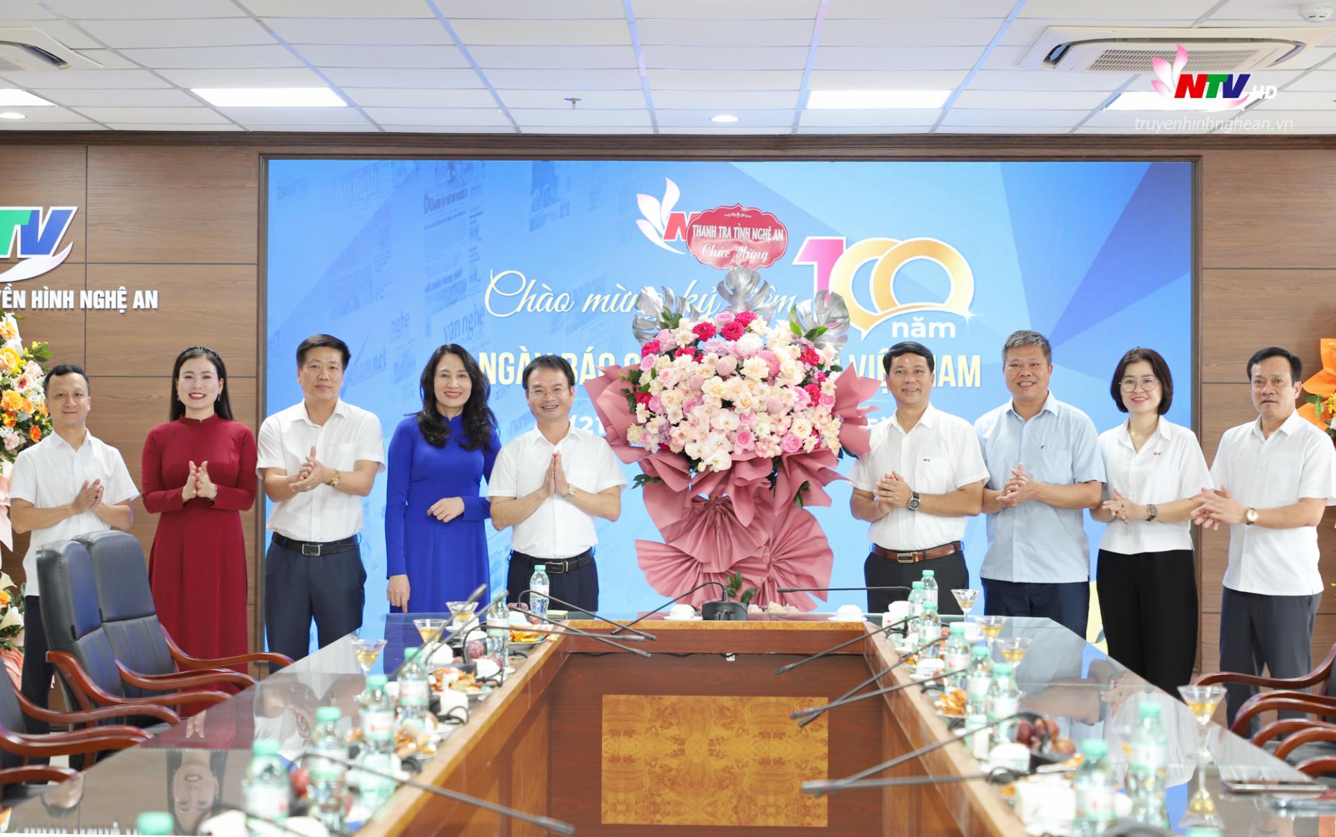 | Đại diện Thường trực HĐND tỉnhh và Đoàn ĐBQH tỉnh chúc mừng Đài PT-TH Nghệ An nhân kỷ niệm 100 năm ngày Báo chí Cách mạng Việt Nam. |
