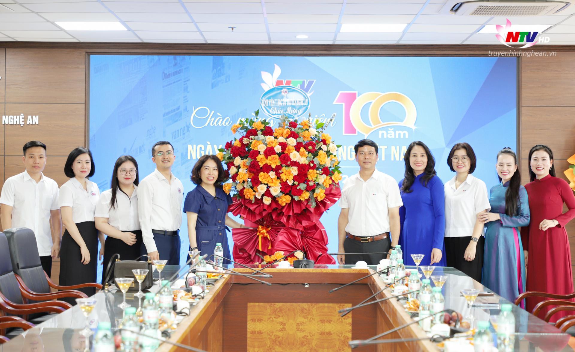 | Giám đốc Sở Y tế Lê Thị Hoài Chung cùng đoàn đại biểu của Sở chúc mừng Đài PT-TH Nghệ An. |