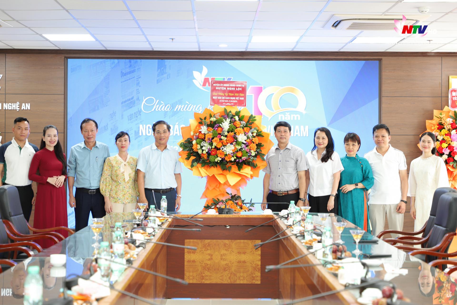 | Đoàn đại biểu Huyện uỷ - HĐND - UBND - UBMTTQ huyện Nghi Lộc do đồng chí Nguyễn Thanh Tùng - Phó Bí thư, Chủ tịch UBND huyện dẫn đầu đến thăm, chúc mừng Đài PT-TH Nghệ An. |