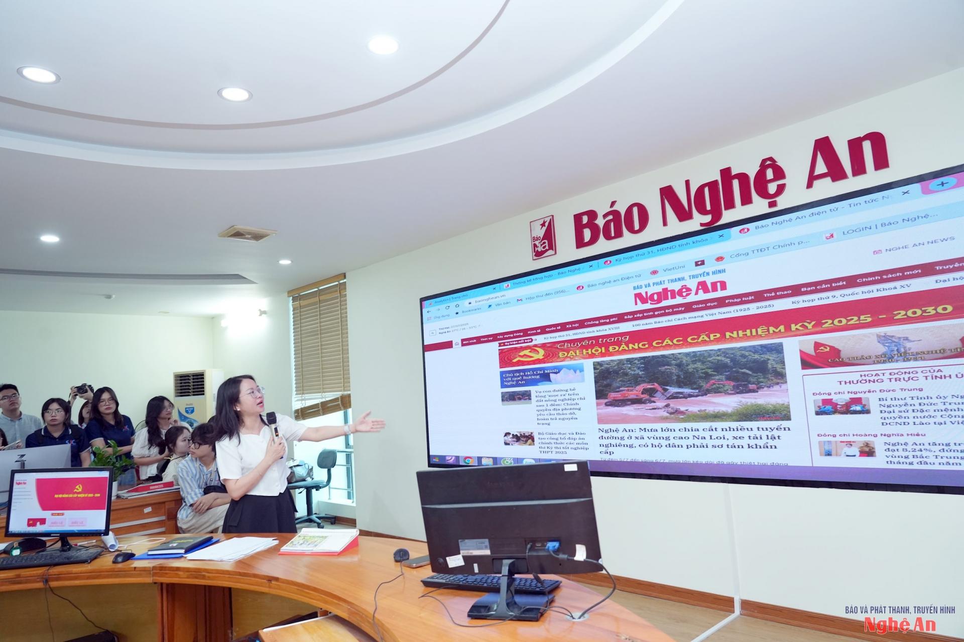 Tại buổi làm việc, các sinh viên đã được nghiên cứu về mô hình Tòa soạn Báo và phát thanh, truyền hình Nghệ An; đồng thời, tìm hiểu những yêu cầu về kiến thức, kỹ năng, đạo đức của nhà báo trong kỷ nguyên số.