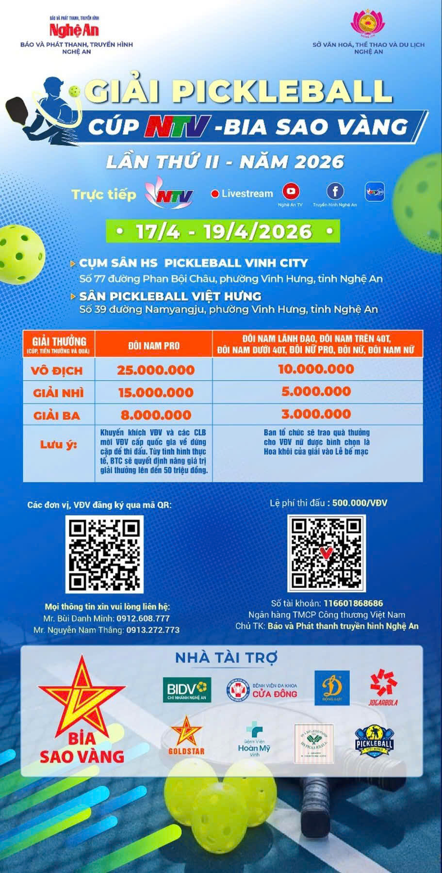 Giải đấu sẽ diễn ra từ ngày 17/4 đến ngày 19/4/2026