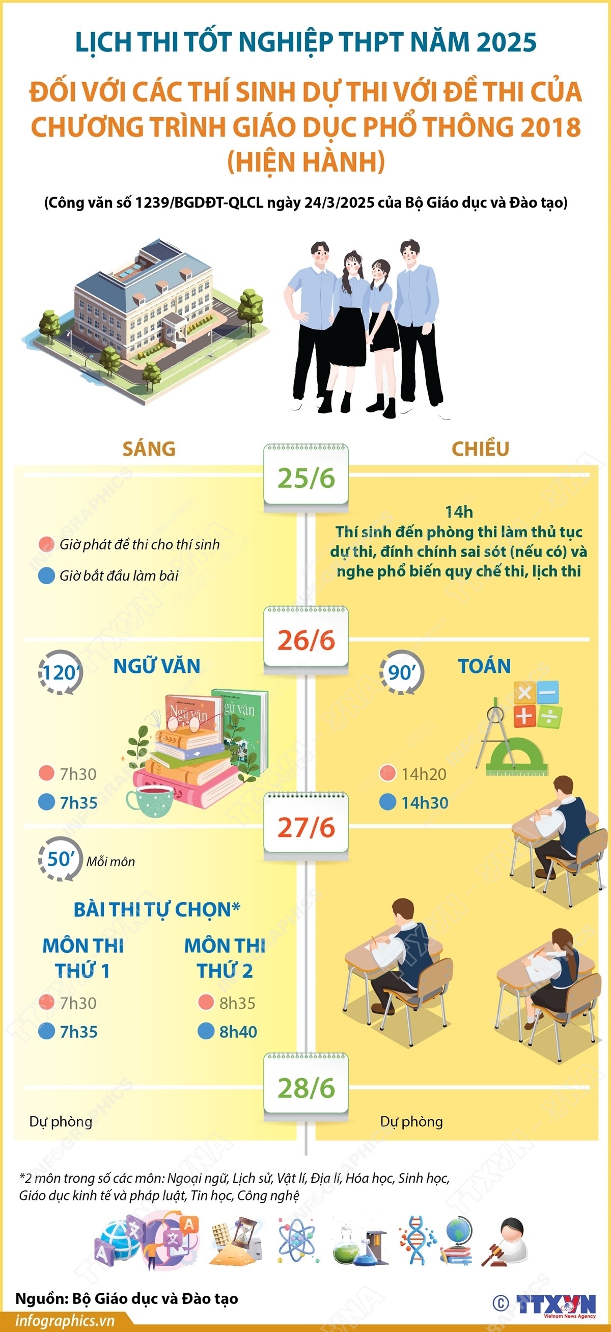 Lịch thi tốt nghiệp THPT năm 2025 đối với các thí sinh dự thi đề thi của chương trình GDPT hiện hành