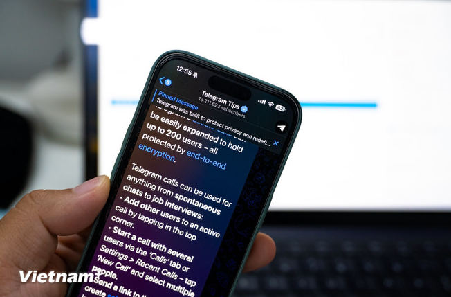 | Giao diện Telegram. (Ảnh: Minh Sơn/Vietnam+) |