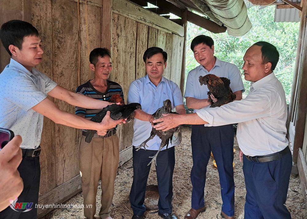 Tại xã Mường Lống, đoàn công tác của huyện đã kiểm tra, đánh giá hiệu quả kinh tế của mô hình chăn nuôi gà đen tại bản Mường Lống 1, một trong những bản làng có quy mô, số hộ chăn nuôi giống gà đen đặc sản nhiều của xã Mường Lống.