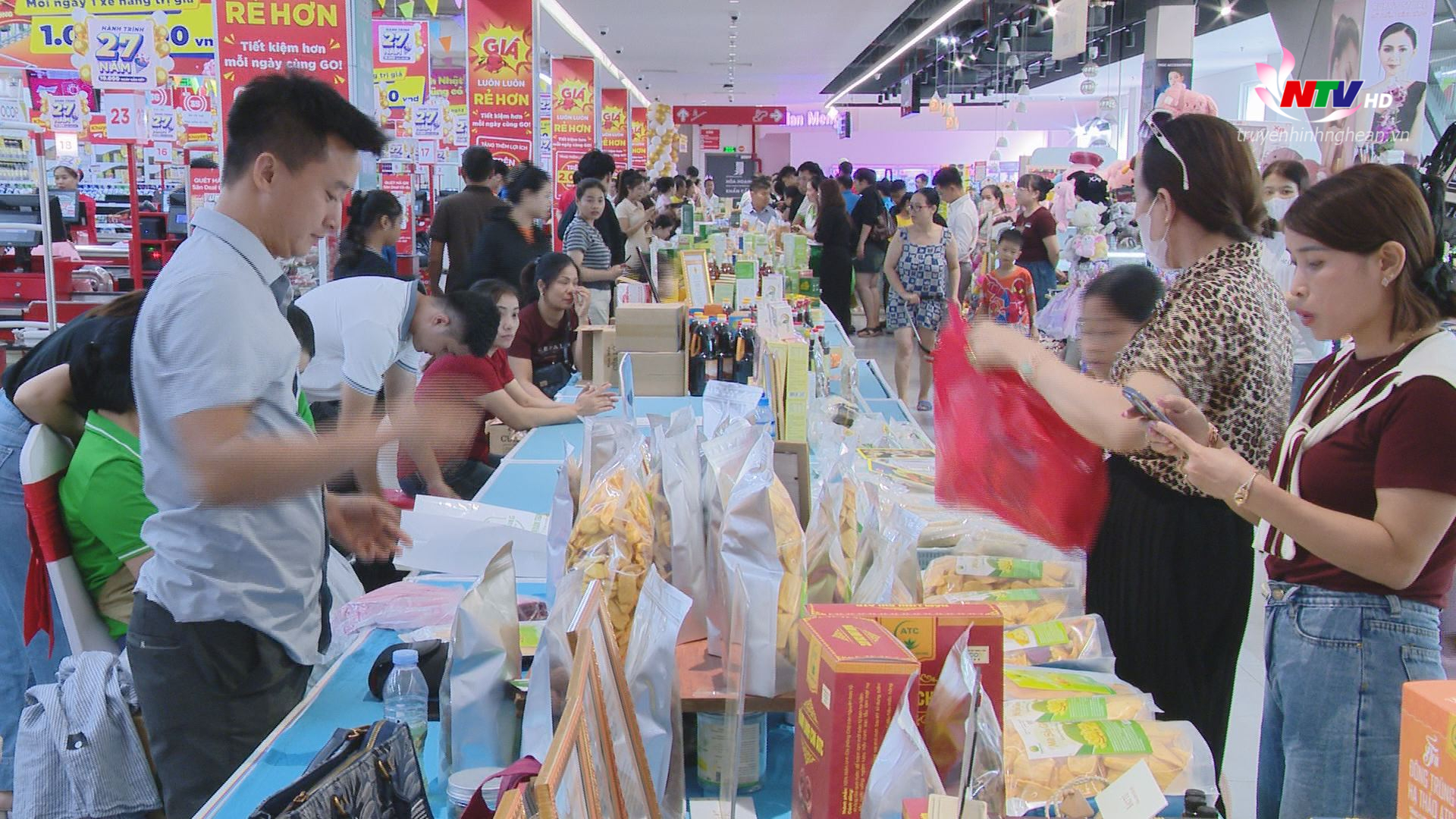 | Rất đông người dân mua sắm sản phẩm OCOP tại siêu thị |