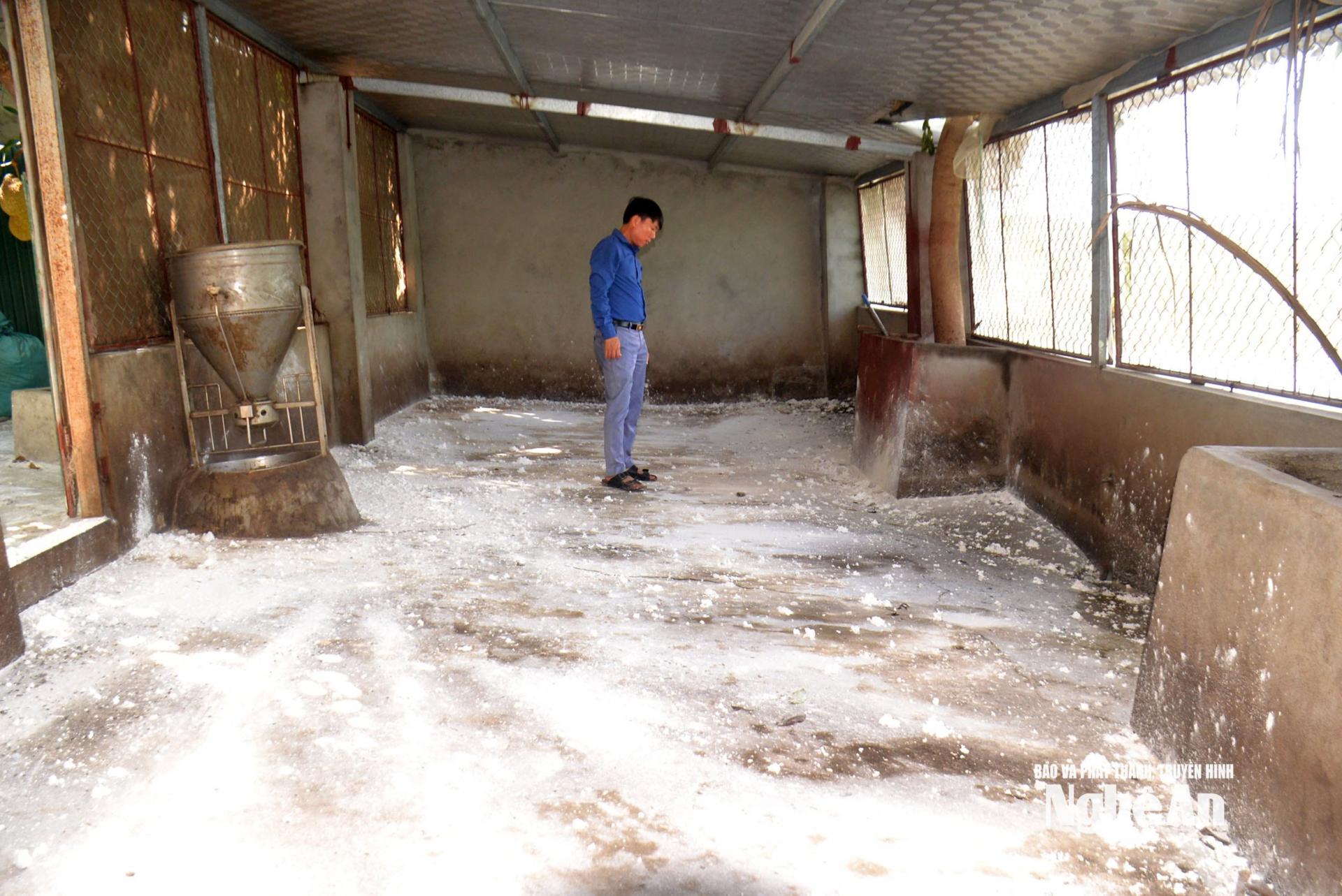 Ghé thăm gia đình anh Phạm Văn Hiến (xóm Sơn Thủy), chúng tôi chứng kiến chuồng trại vắng bóng, thay vào đó là mùi vôi bột xộc lên nồng nặc, dấu tích của một đợt tiêu hủy lợn vừa xảy ra. Chị Đinh Thị Thanh Huyền - vợ anh Hiến cho hay: Chỉ trong vòng chưa đầy một tuần, gia đình đã tiêu hủy 80 con lợn thịt và 32 con khác đang có dấu hiệu nhiễm dịch, chờ ngày tiêu hủy tiếp. Với tổng đàn ban đầu hơn 280 con, cùng 15 con lợn nái, thiệt hại là rất lớn.
