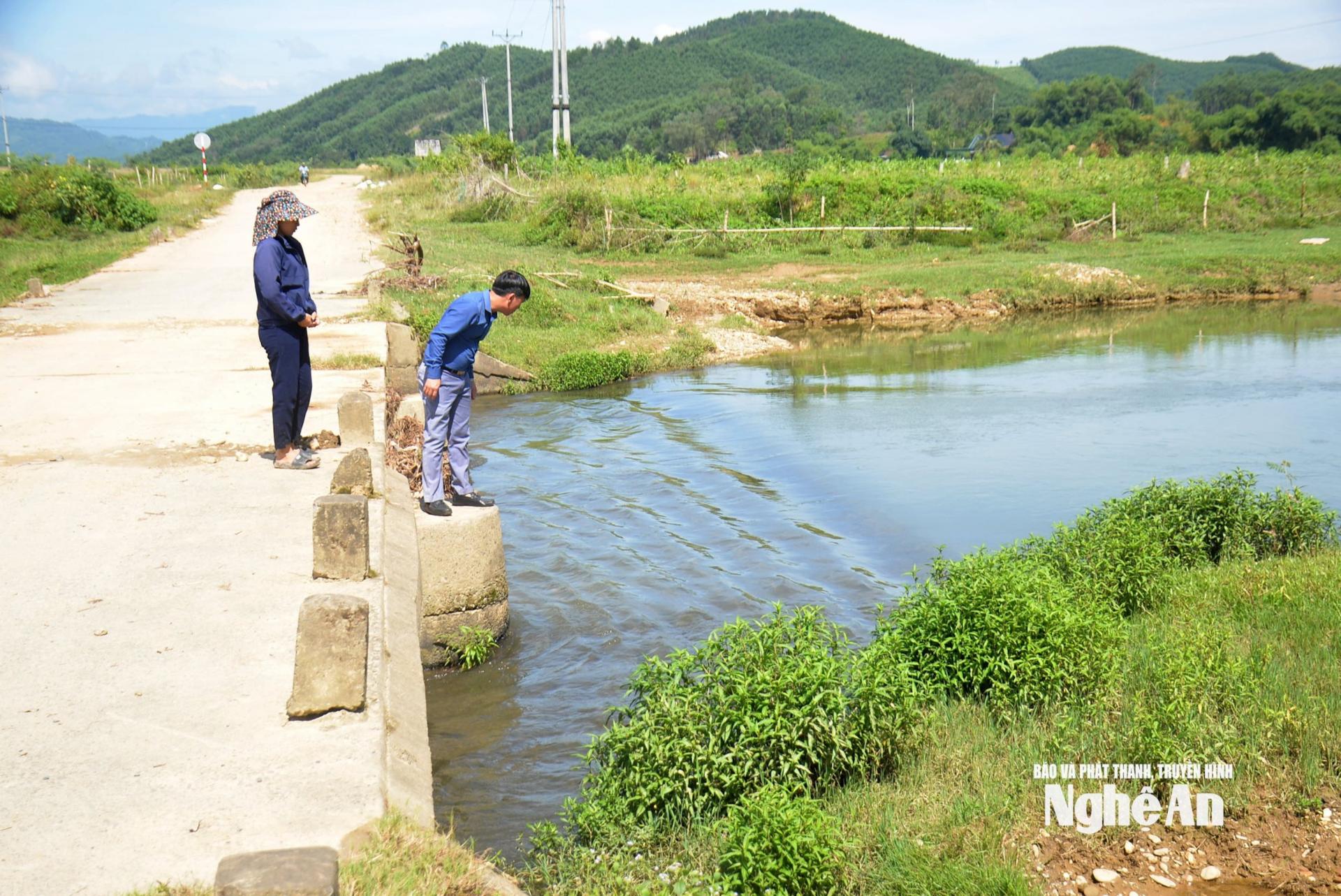 | Khu vực cống tràn qua sông Con, giáp ranh giữa xã Hoa Quân với xã Kim Bảng thường xuất hiện xác lợn chết. Ảnh: Xuân Hoàng |