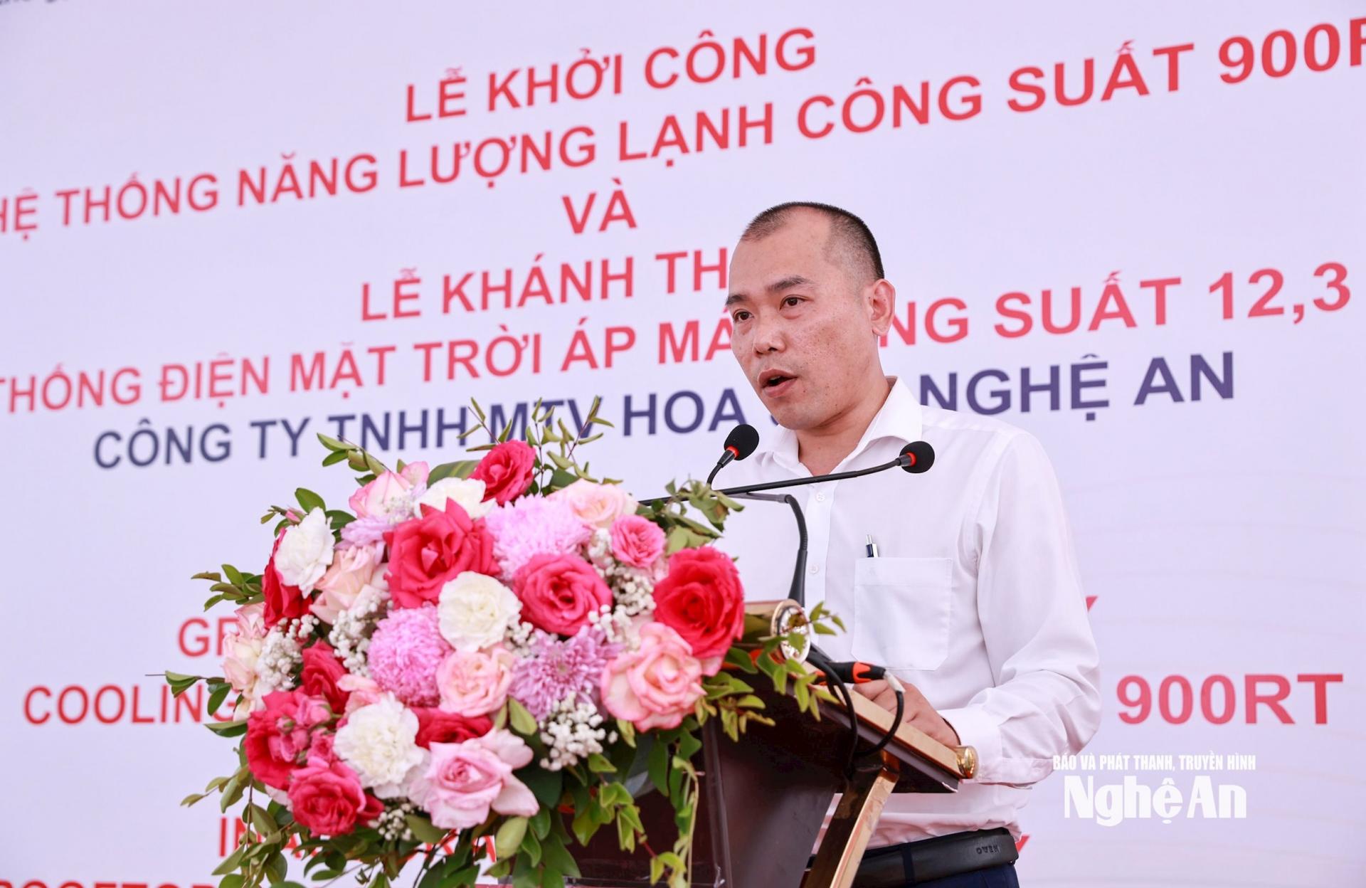 | Ông Hồ Xuân Sỹ - Giám đốc Công ty TNHH MTV Hoa Sen Nghệ An phát biểu tại buổi lễ. |