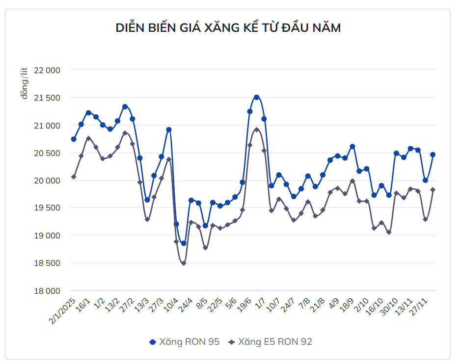 Như vậy, giá xăng trong nước đã tăng trở lại sau khi giảm 2 kỳ liên tiếp trước đó. Từ đầu năm đến nay, mặt hàng xăng RON 95 đã tăng tổng cộng 27 lần, giảm 23 lần.