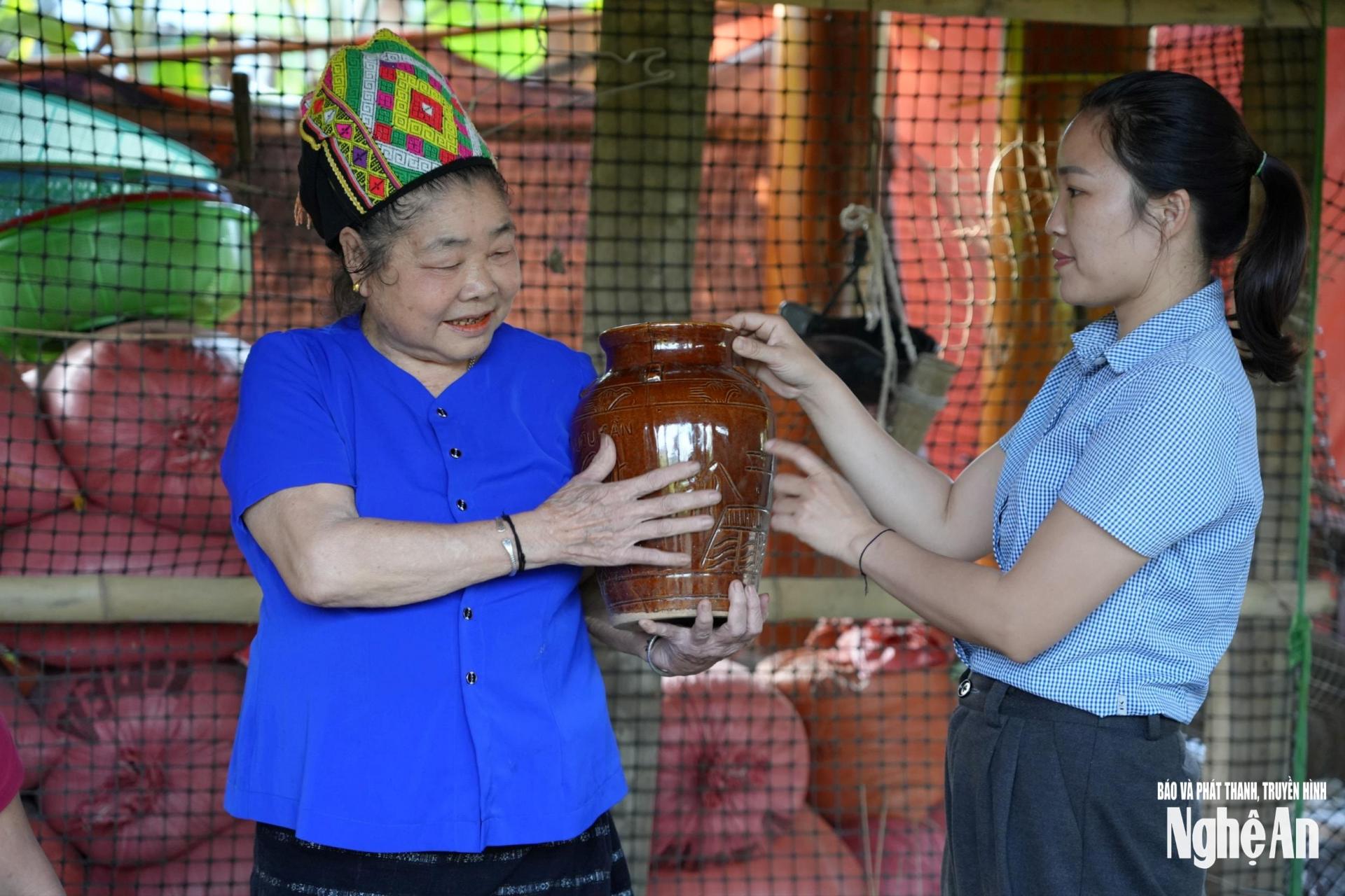 30 năm làm dâu bản, cũng là chừng ấy năm bà Ngân Thị Thơm gắn bó với nghề làm rượu cần. Từ vài vò rượu làm để dùng trong nhà, nay rượu cần Chòm Muộng đã trở thành sản phẩm được khách hàng khắp nơi tìm mua. Tổ sản xuất rượu cần do bà Thơm làm tổ trưởng có 12 thành viên. Dịp Tết là cao điểm nhất trong năm, bà Thơm cho biết: “Những ngày này, công việc bận rộn gấp đôi, gấp ba. Chúng tôi phải chuẩn bị từ khâu nếp, trấu đến ủ rượu trước cả tháng để kịp giao cho khách. Mỗi vò rượu đều phải đảm bảo thơm ngon, đúng hương men bản làng, mới phục vụ được nhu cầu lớn của khách dịp cuối năm”.