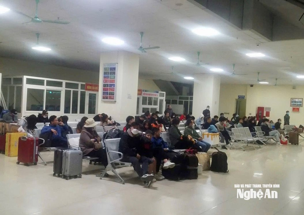 | Hành khách đón xe đầu Xuân tại Bến xe Bắc Vinh. Ảnh: Văn Trường |