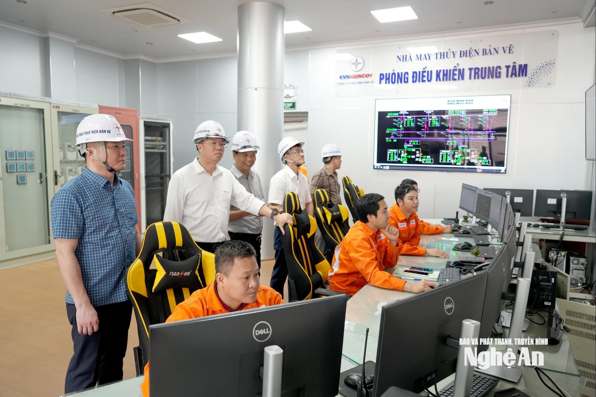 | Kiểm tra công tác vận hành tại Phòng điều khiển trung tâm, Nhà máy Thủy điện Bản Vẽ. |