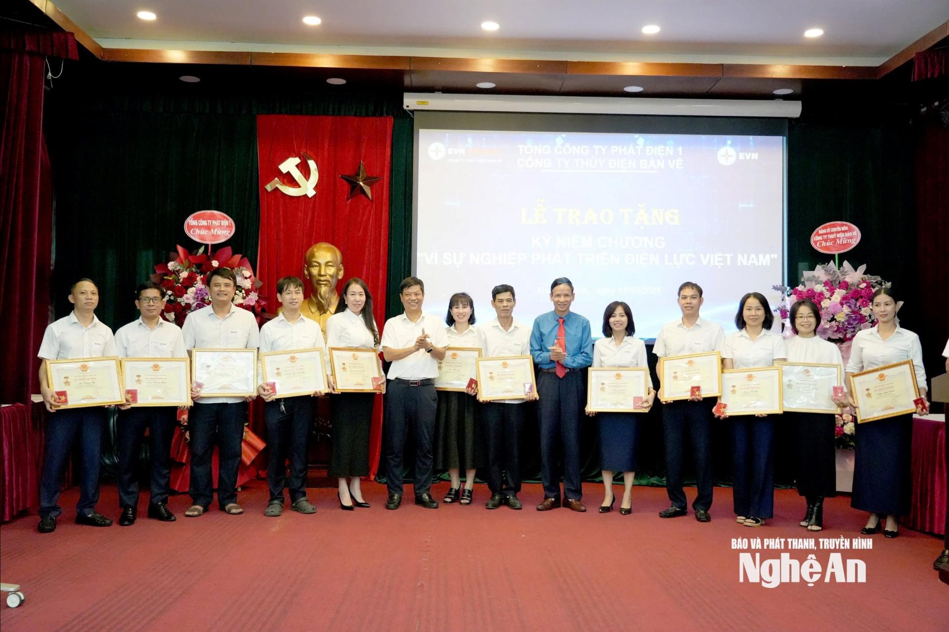 | Lãnh đạo Tổng Công ty Phát điện 1 và Công ty Thủy điện Bản Vẽ trao Kỷ niệm chương "Vì sự nghiệp phát triển điện lực Việt Nam" cho cán bộ, công nhân viên. |