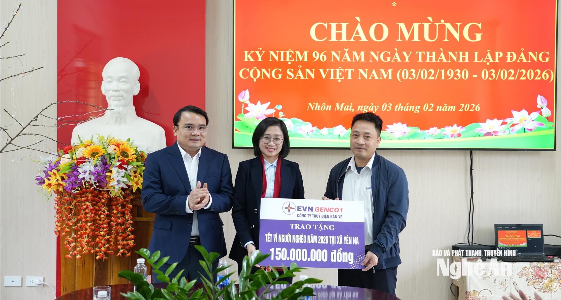 | Đại diện Công ty Thủy điện Bản Vẽ trao quà Tết vì người nghèo năm 2026 cho đại diện xã Yên Na. |