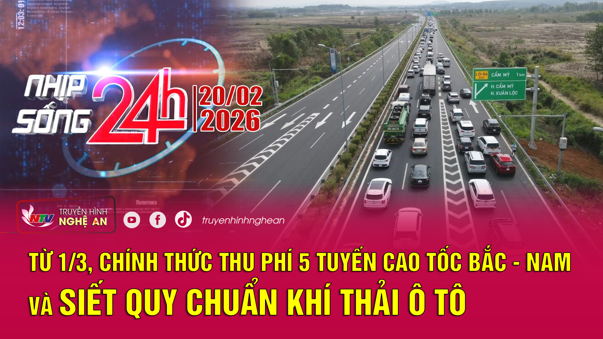 Bản tin Nhịp sống 24h - 20/02/2026: Từ 1/3, chính thức thu phí 5 tuyến cao tốc Bắc - Nam và siết quy chuẩn khí thải ô tô