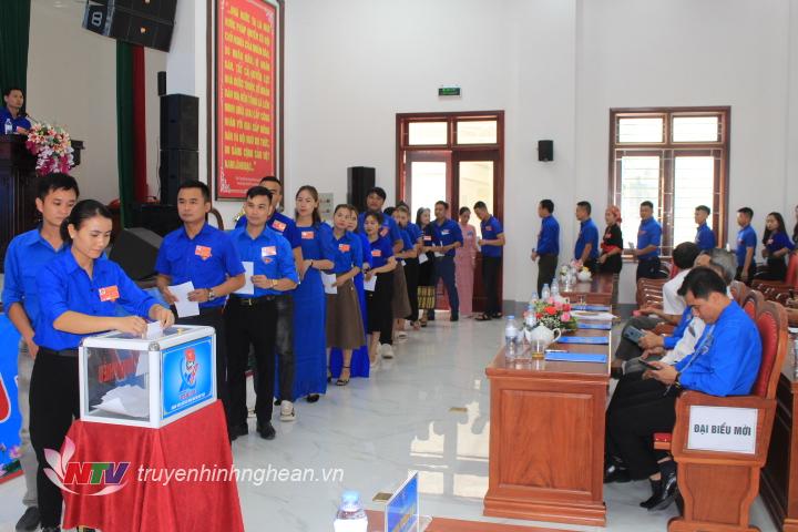 | Các đại biểu bỏ phiếu bầu Ban Chấp hành Huyện Quỳ Hợp khóa XXI. |