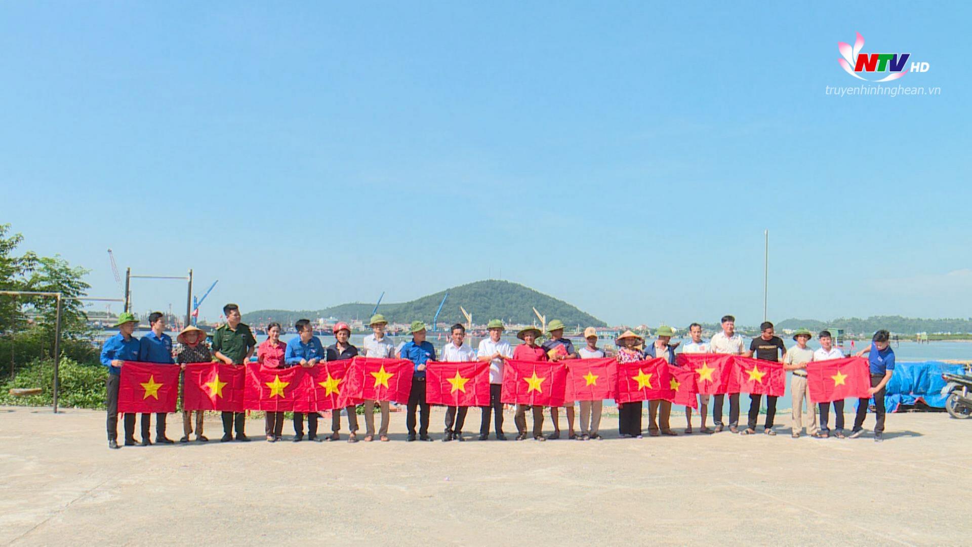 | Đại diện Đảng ủy Các cơ quan Đảng tỉnh và các tổ chức cơ sở Đoàn trực thuộc trao tặng cờ Tổ quốc cho ngư dân. |