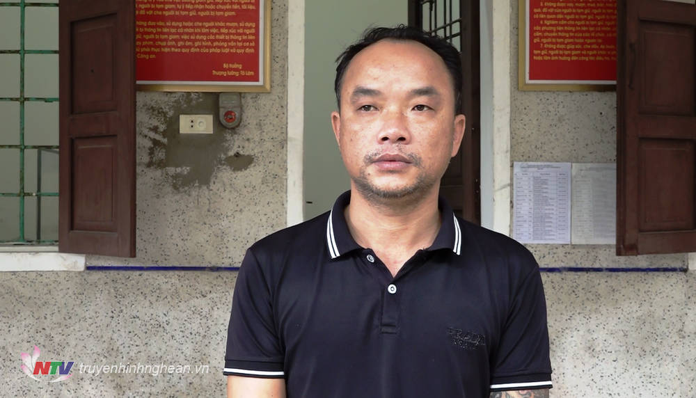 | Đối tượng Nguyễn Văn Hà trú tại huyện Duy Xuyên, tỉnh Quảng Nam tại cơ quan Công an TP Vinh. |