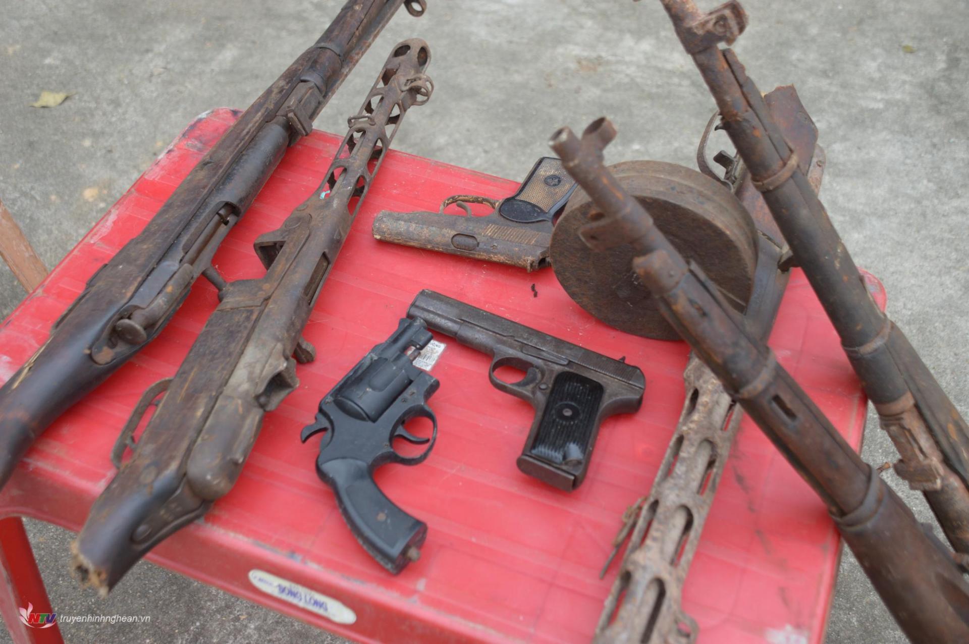 | Các loại khẩu súng quân dụng, súng hơi do nước ngoài sản xuất, súng tự chế được thu hồi. |