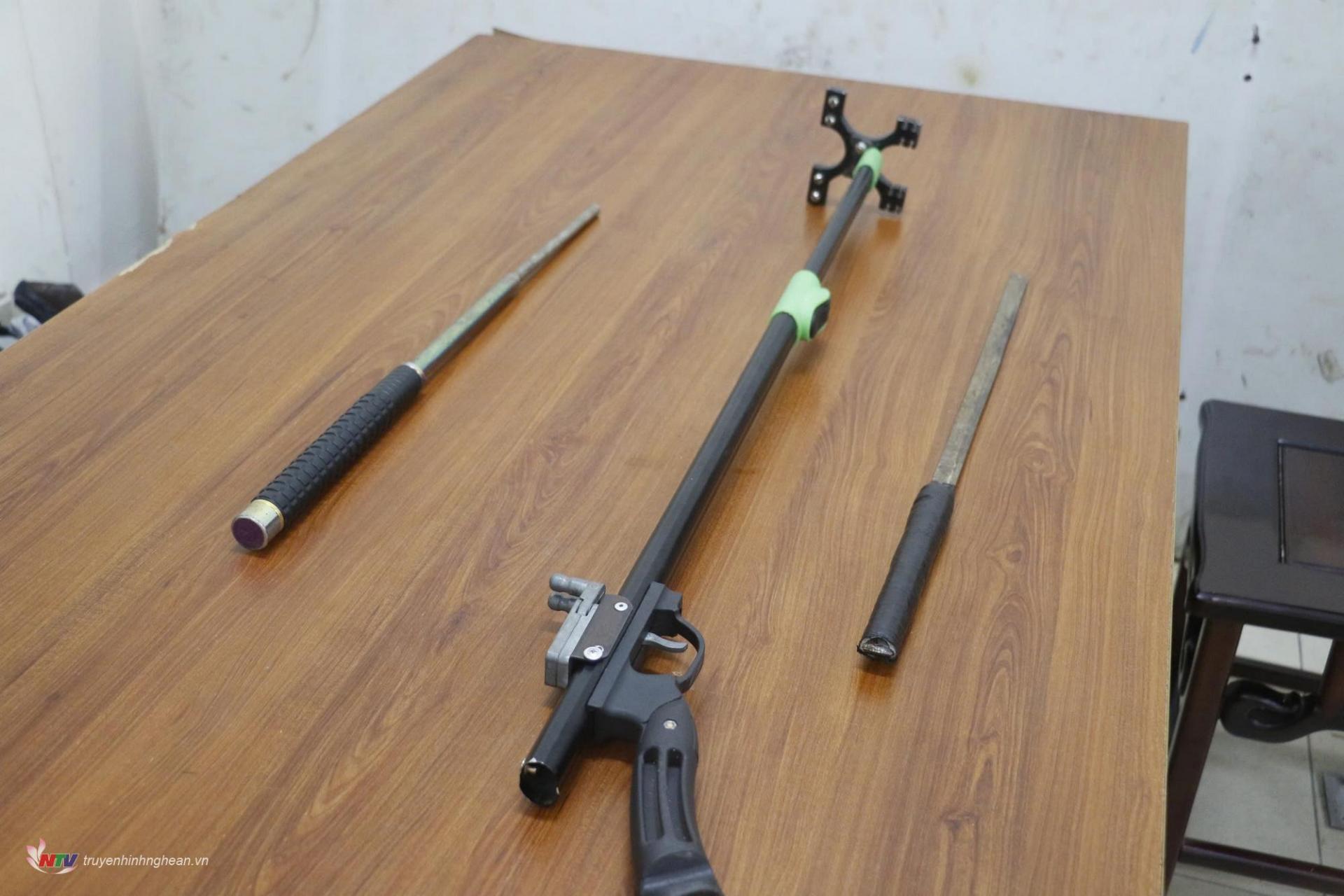 Từ ngày 22 đến 25/4/2025, sau thời gian theo dõi và áp dụng đồng bộ các biện pháp nghiệp vụ, Phòng Cảnh sát hình sự Công an Nghệ An chủ trì phối hợp với các đơn vị liên quan đã bắt giữ thành công ổ nhóm này. Tang vật thu giữ gồm 01 súng bắn đạn bi, 02 xe mô tô, 03 điện thoại, 01 kiếm, 01 gậy batong và nhiều vật chứng liên quan.