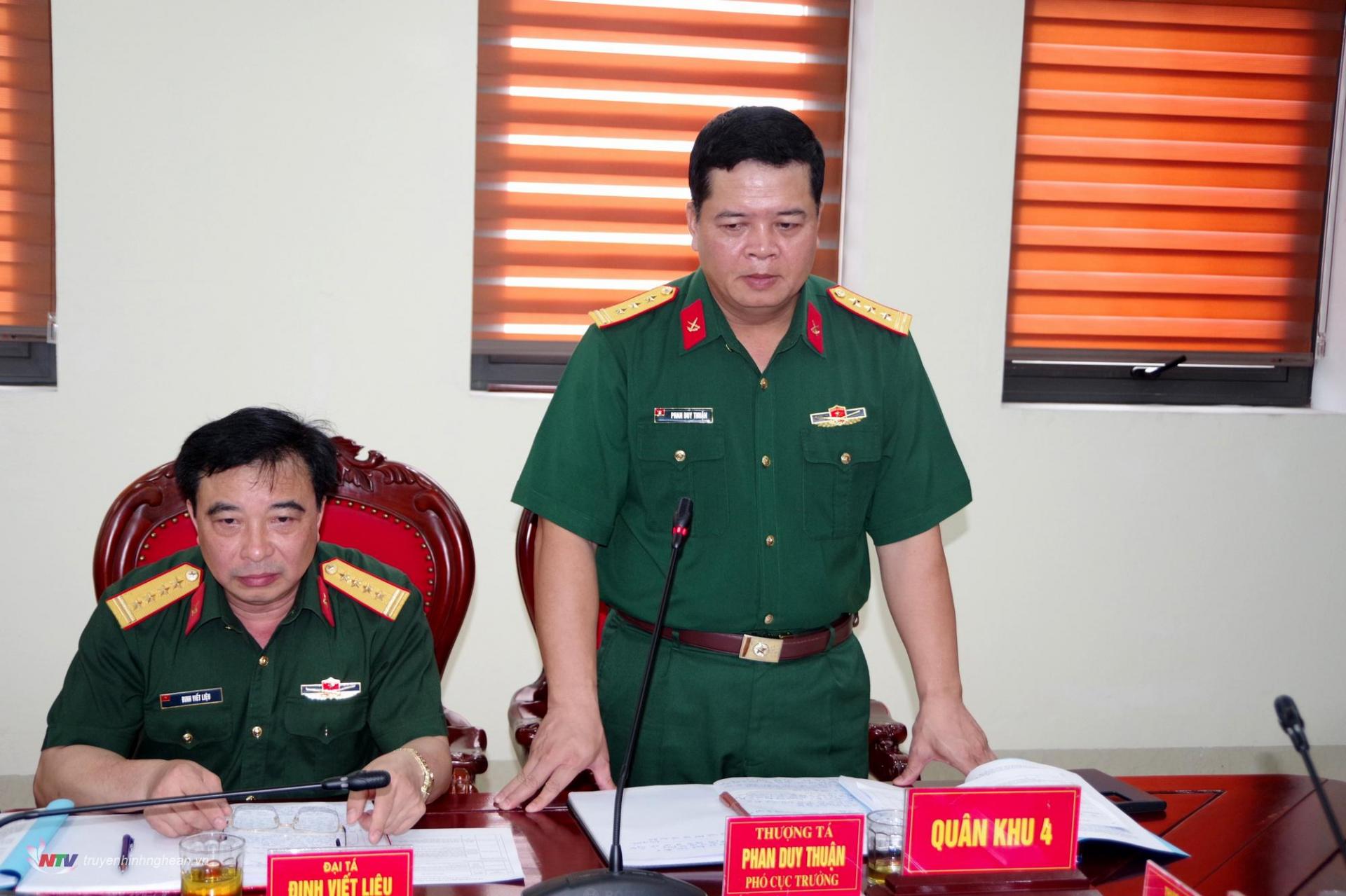 | Thượng tá Phan Duy Thuận, Phó Chủ nhiệm Hậu cần - Kỹ thuật Quân khu 4 phát biểu. |