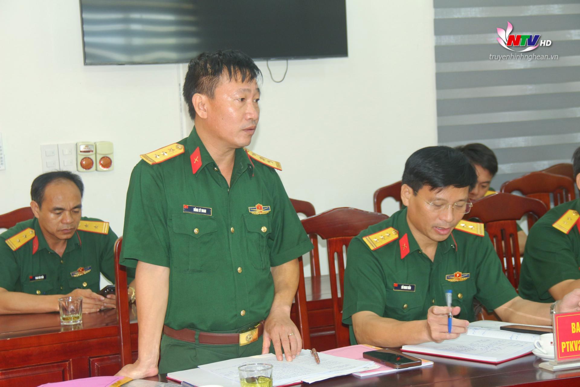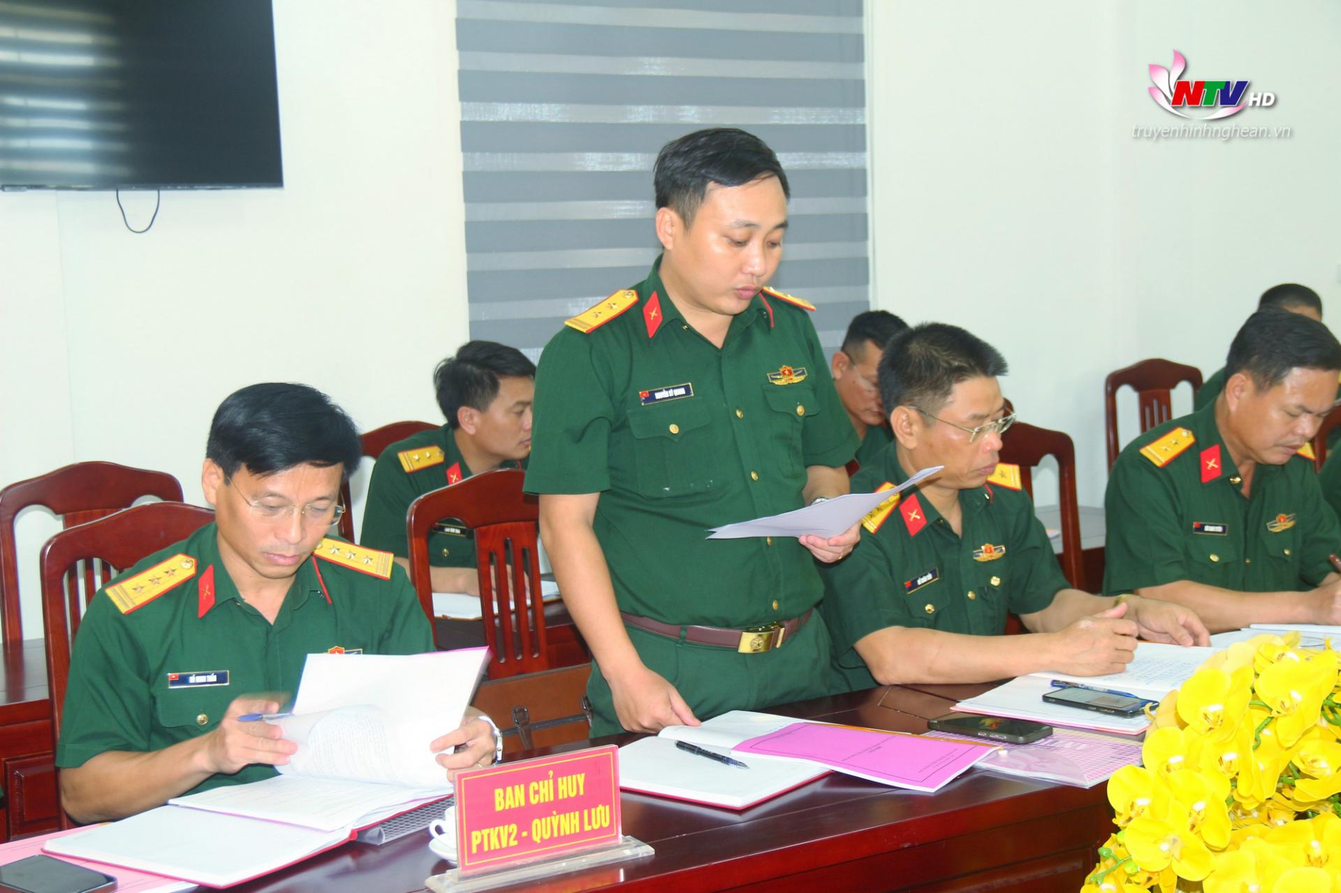 | Thượng tá Đồng Sỹ Hoan – Chỉ huy trưởng Ban Chỉ huy Phòng Thủ khu vực 2 - Quỳnh Lưu phát biểu tại hội nghị. |