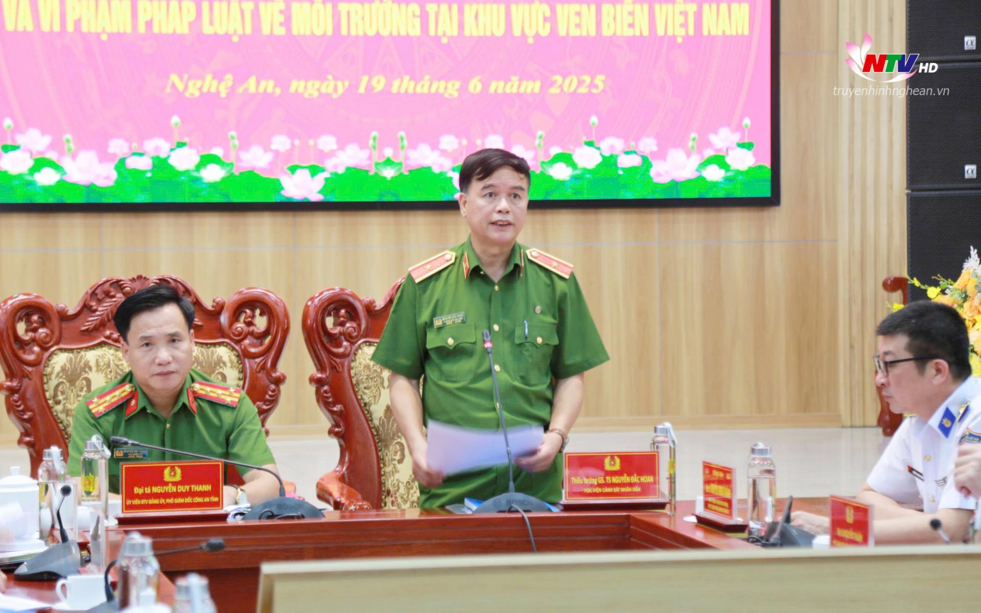 | Đại tá Hoàng Đinh Luân – Phó Chỉ huy trưởng, Tham mưu trưởng Bộ Chỉ huy Quân sự phát biểu kết luận hội nghị. |