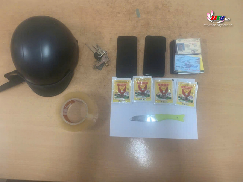 Tang vật thu giữ: 01 con dao, 04 gói thuốc trừ sâu; 03 điện thoại di động; 01 xe mô tô và các vật chứng có liên quan. Nhật là đối tượng đã từng có 02 tiền án và vừa ra tù về tội Trộm cắp tài sản. Quá trình bỏ trốn, để đối phó Cơ quan Công an, Nhật đã vứt 02 chiếc điện thoại của mẹ người yêu và người yêu xuống đường. Hiện, Phòng Cảnh sát hình sự Công an tỉnh Nghệ An đang củng cố hồ sơ để khởi tố Nguyễn Khắc Nhật về các tội “Cướp tài sản” và “Bắt cóc con tin” theo đúng quy định pháp luật.