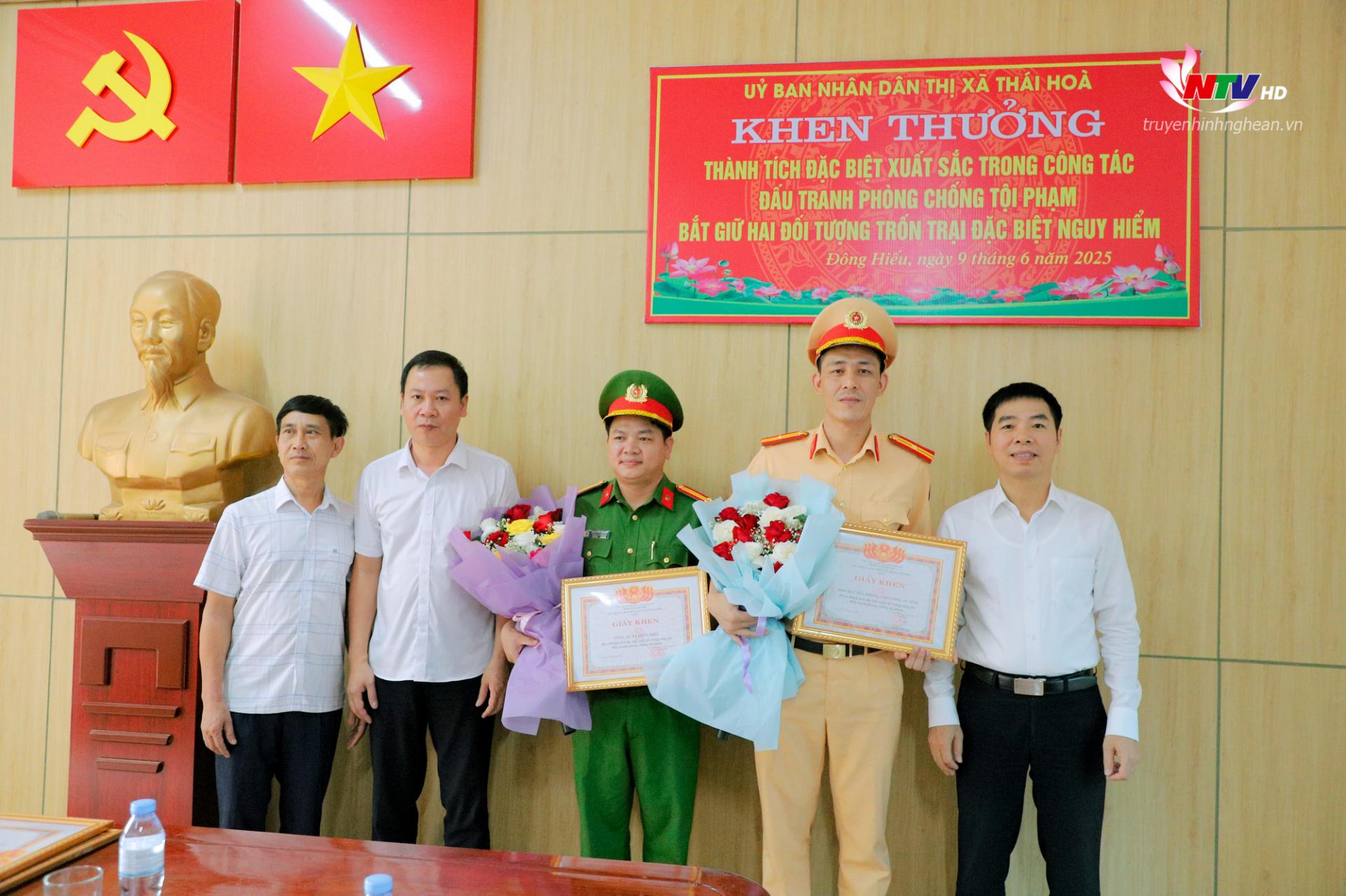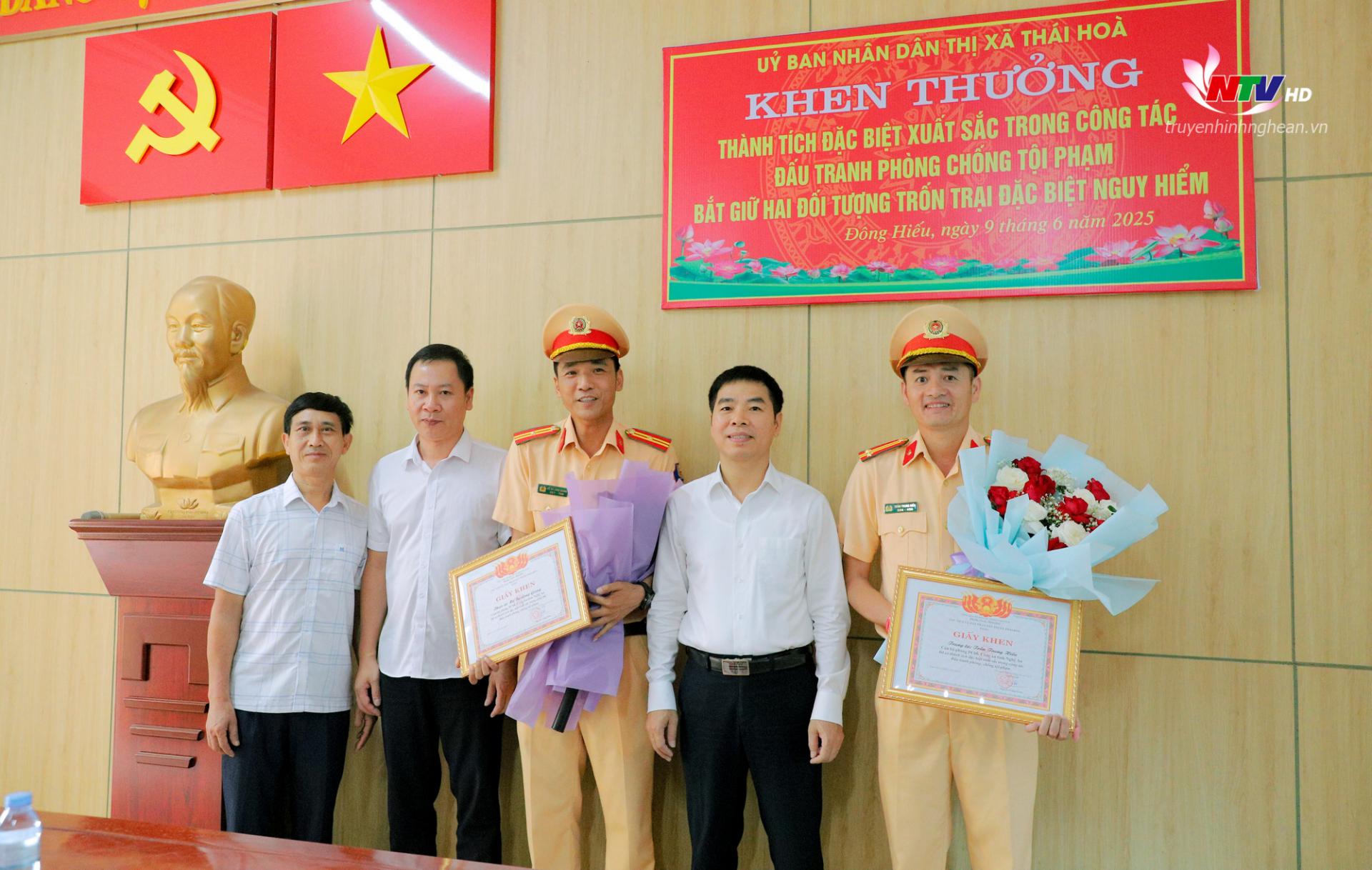 Để động viên kịp thời tinh thần của cán bộ chiến sỹ, UBND thị xã Thái Hoà đã quyết định khen thưởng cho tập thể và một số cá nhân của Công an xã Đông Hiếu và Đội CSGT đường bộ số 1, phòng PC08.