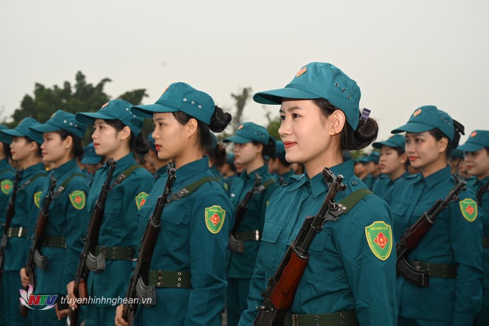 | Các Nữ dân quân tự vệ tham gia luyện tập diễu binh. |