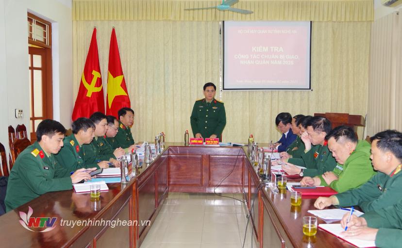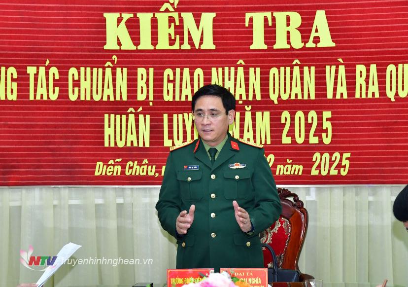Trên cơ sở báo cáo của Ban CHQS huyện Diễn Châu và kiểm tra thực tế, Đại tá Phan Đại Nghĩa - Chỉ huy trưởng Bộ CHQS tỉnh đánh giá cao kết quả thực hiện nhiệm vụ tuyển chọn và gọi công dân nhập ngũ năm 2025 cũng như công tác chuẩn bị cho lễ giao nhận quân của các đơn vị. Đồng chí cũng yêu cầu các đơn vị từ nay đến Lễ giao, nhận quân cần tập trung rà soát, hoàn thiện hồ sơ cho các công dân chuẩn bị nhập ngũ; phối hợp chặt chẽ với Ban Tổ chức Huyện ủy, làm tốt công tác quản lý, bám nắm tâm tư, tình cảm, kịp thời động viên, khích lệ những trường hợp có hoàn cảnh khó khăn để công dân trúng tuyển yên tâm lên đường nhập ngũ; đồng thời, bám sát sự chỉ đạo, hướng dẫn của cơ quan cấp trên, tổ chức Lễ giao, nhận quân bảo đảm trang trọng, ý nghĩa, thực sự là Ngày hội tòng quân.