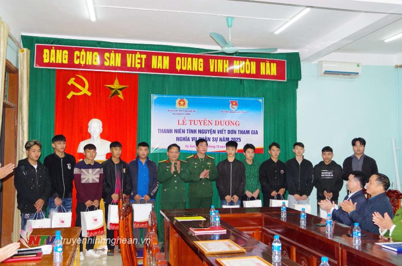 | Tổ chức gặp mặt biểu dương thanh niên huyện Kỳ Sơn viết đơn tình nguyện nhập ngũ năm 2025. |