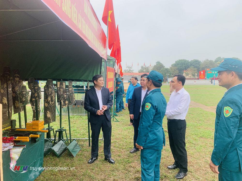 Ngay sau Lễ ra quân huấn luyện và phát động phong trào thi đua năm 2025 các đại biểu tham quan sáng kiến, cải tiến mô hình học cụ của các đơn vị trong LLVT huyện.