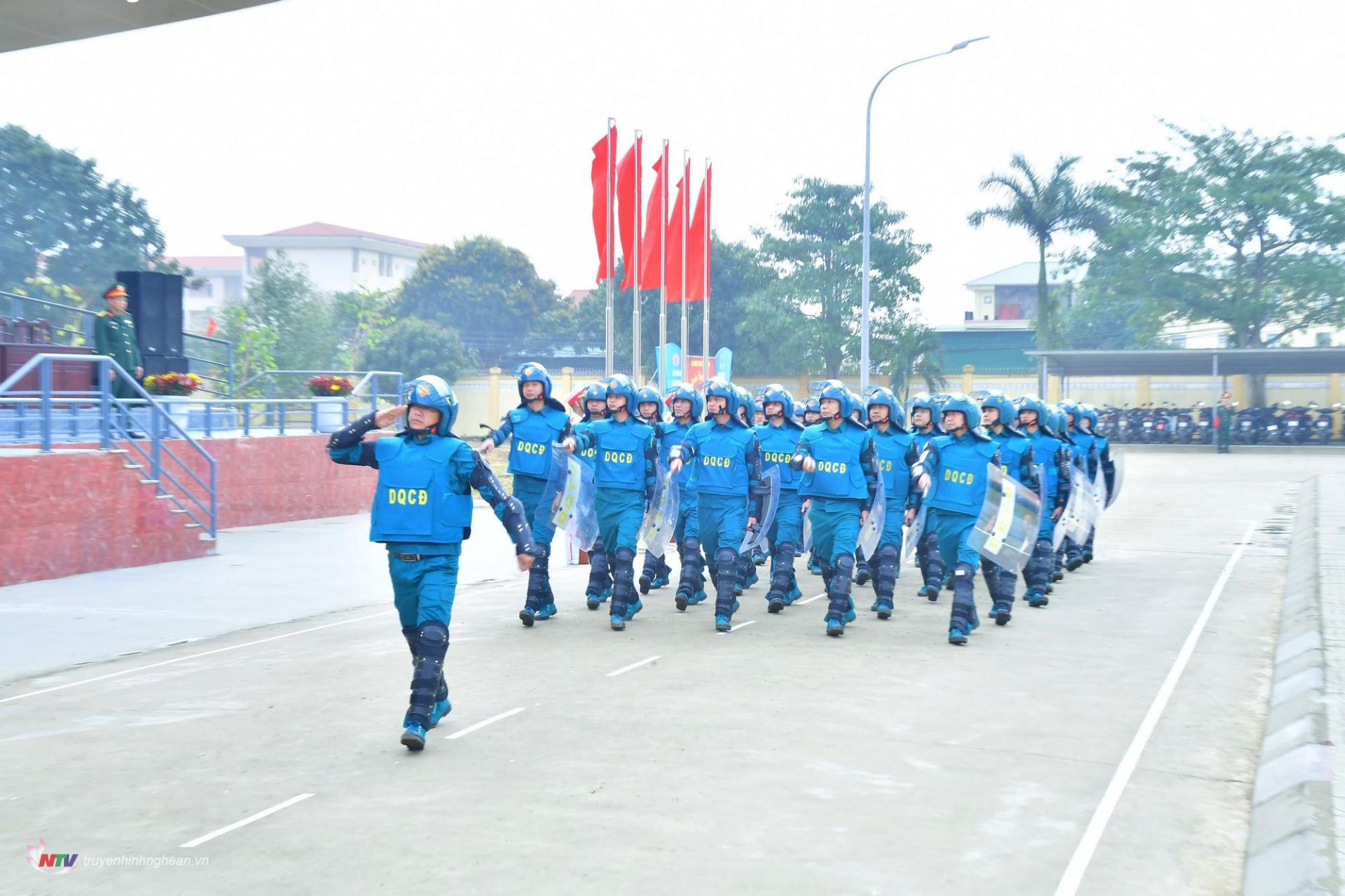 | Khối sĩ quan, Quân nhân chuyên nghiệp Bộ Chỉ huy Bộ đội Biên phòng tỉnh tham gia diểu hành trong buổi tổng duyệt cho lễ ra quân huấn luyện. |