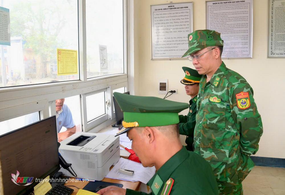 | Đoàn công tác Bộ Chỉ huy Bộ đội Biên phòng tỉnh Nghệ An kiểm tra, giám sát công tác làm thủ tục đăng ký phương tiện xuất, nhập lạch tại trạm Kiểm soát Biên phòng Lạch Quèn, Đồn Biên phòng Quỳnh Thuận. |