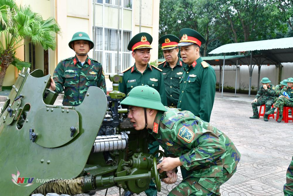 | Lãnh đạo Bộ Chỉ huy Quân sự tỉnh kiểm tra công tác huấn luyện Dự bị động viên tại huyện Diễn Châu. |