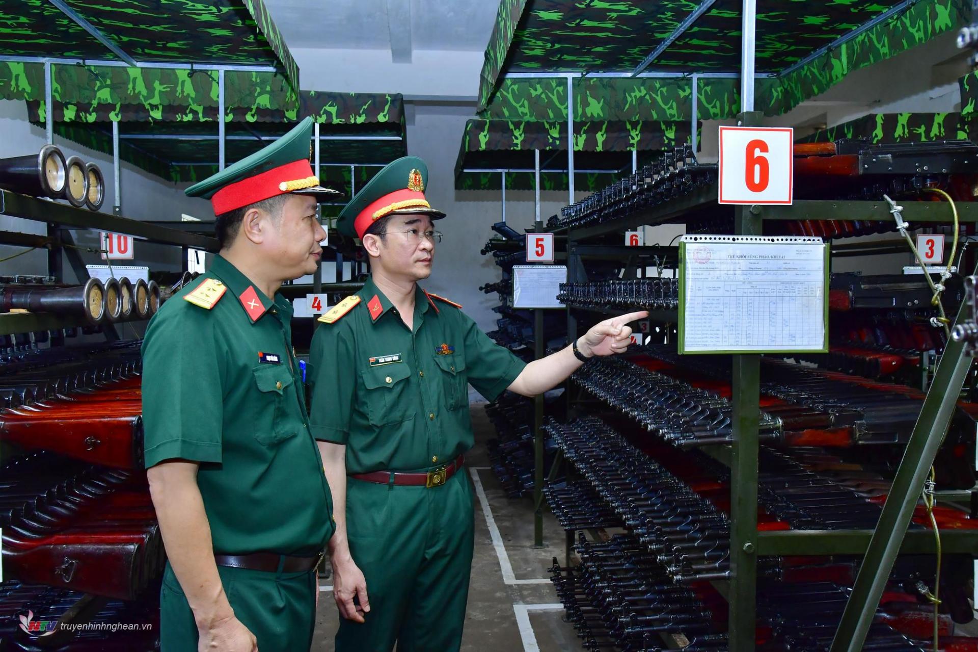 | Kiểm tra công tác sắp xếp và bảo quản vũ khí tại Kho K70, Phòng Hậu cần – Kỹ thuật, Bộ CHQS tỉnh Nghệ An. |